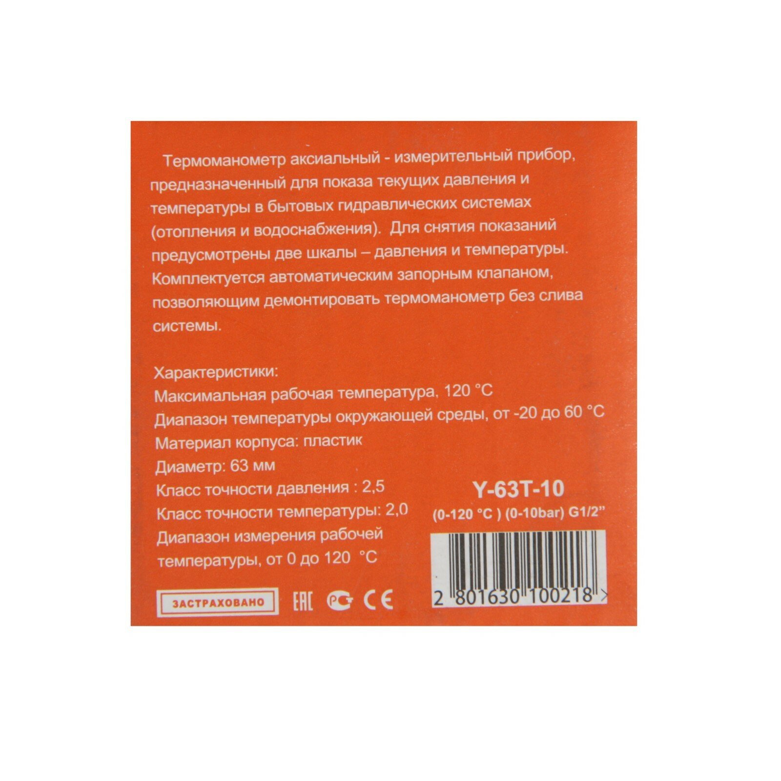 Термоманометр аксиальный 10 бар, подключение 1/2" D-63 мм TIM арт. Y-63T-10 интересное: