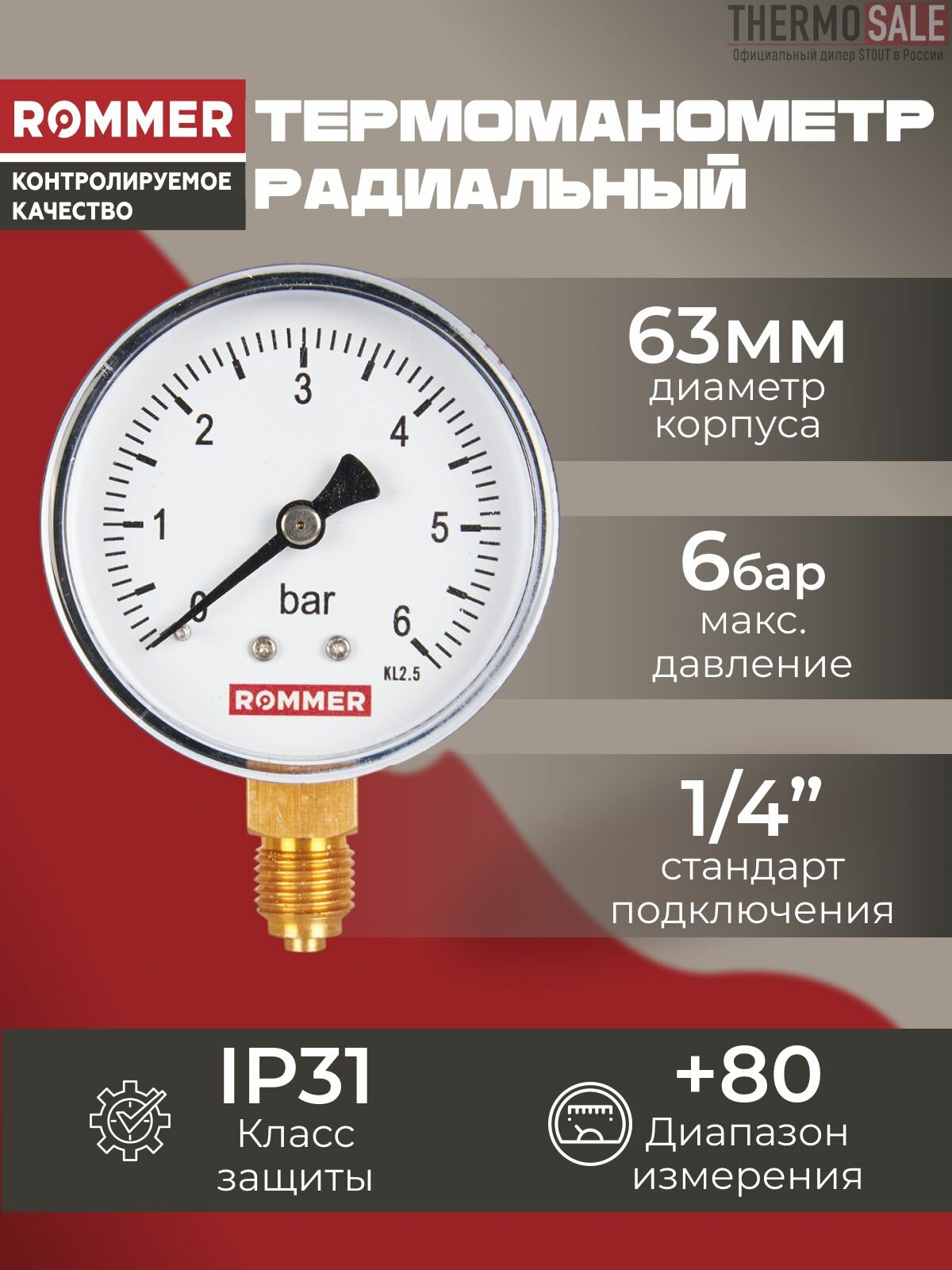 Манометр для водоснабжения 1/4 радиальный, Dn 63 мм, 0-6 бар интересное: