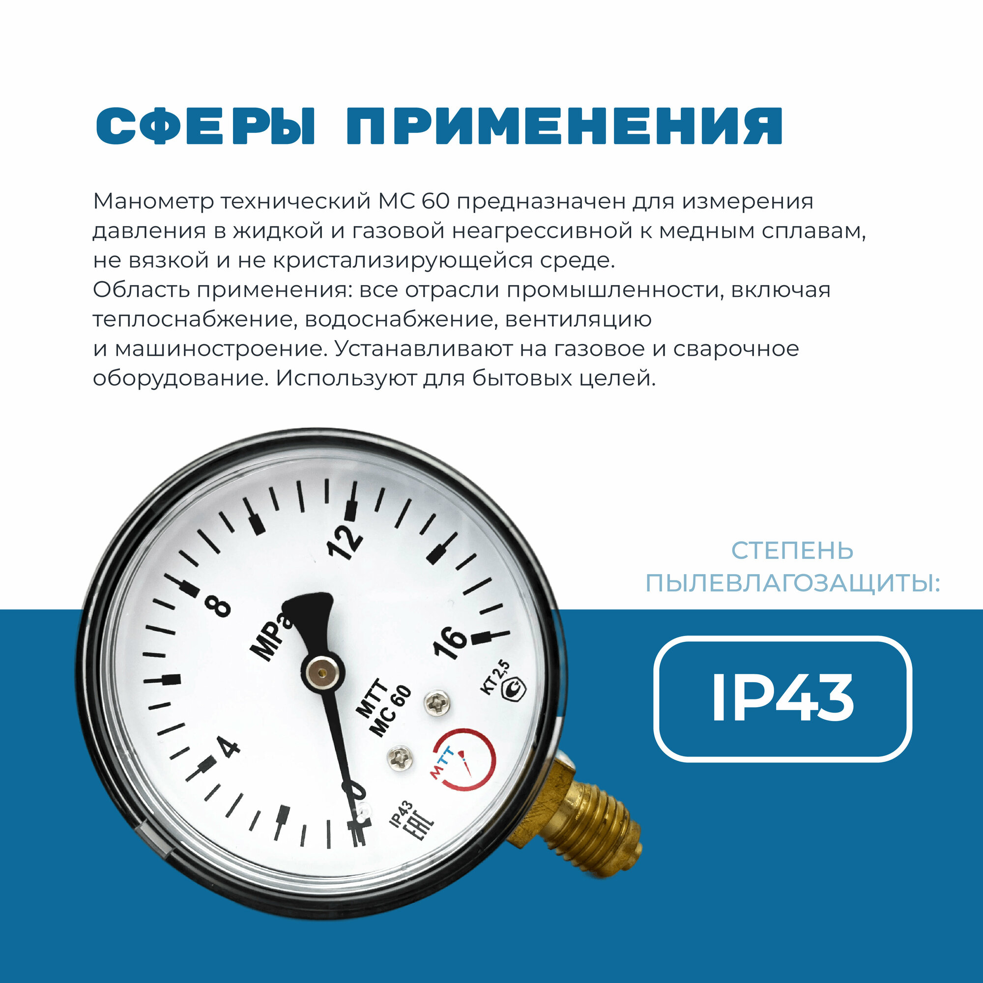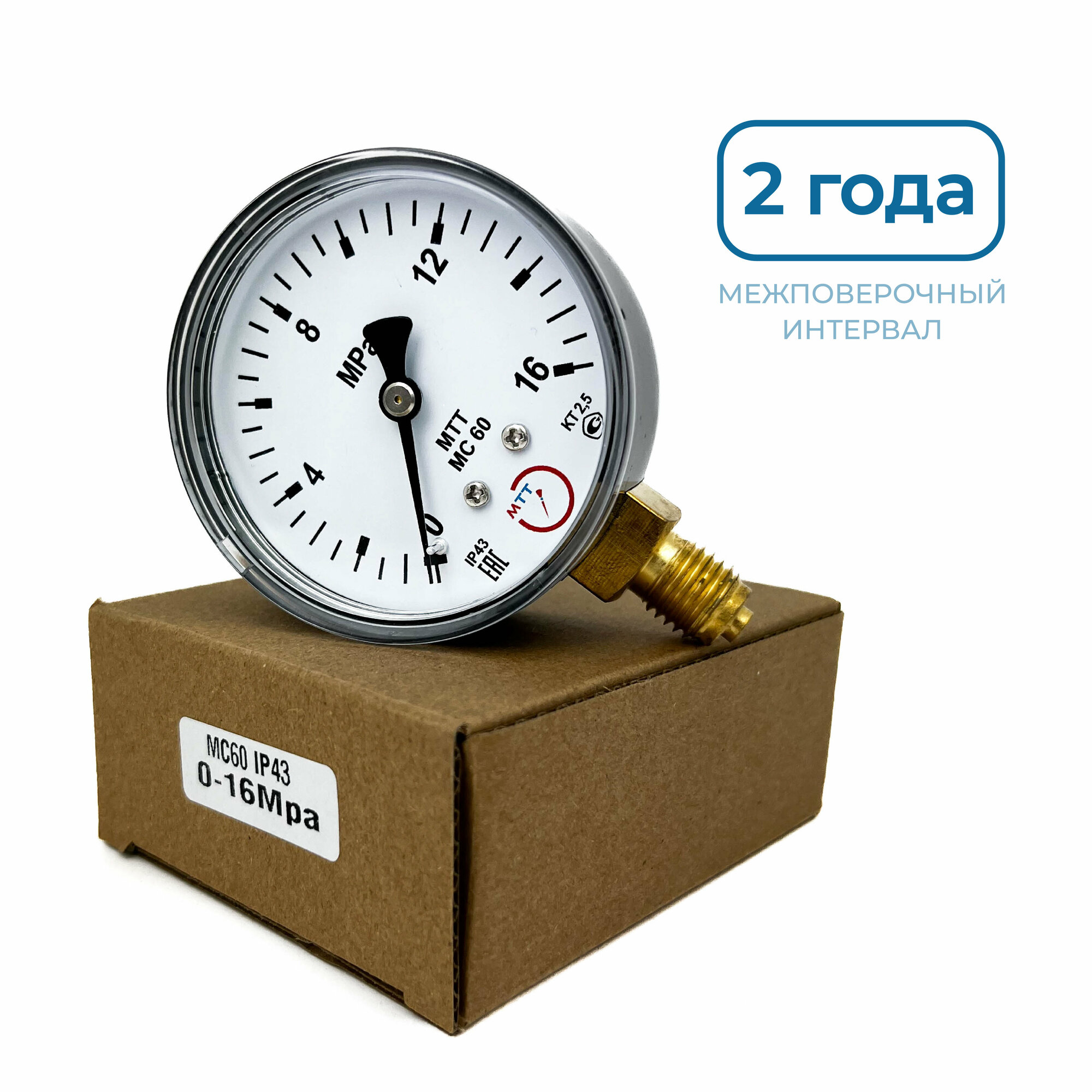 Манометр МС60 давление 0-16 МПа (160 бар) резьба М12х1.5 класс точности 2,5 корпус 62 мм. поверка 2 года интересное: