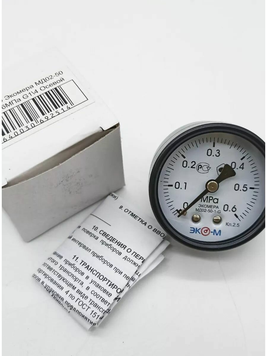 Манометр Экомера МД02-50мм 0.0,6МПа G1/4 Осевой интересное: