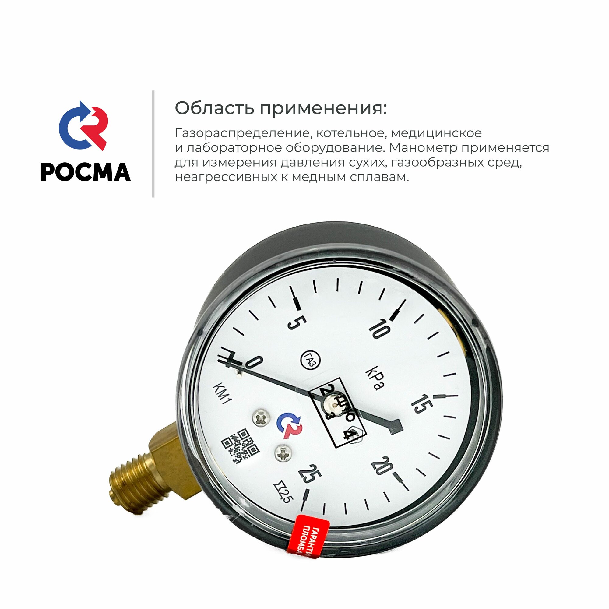 Купить Напоромер КМ-11 Росма давление от 0 до 25 кПа, резьба М12х1,5, класс точности 2,5, диаметр корпуса 63 мм, поверка на 2 года
