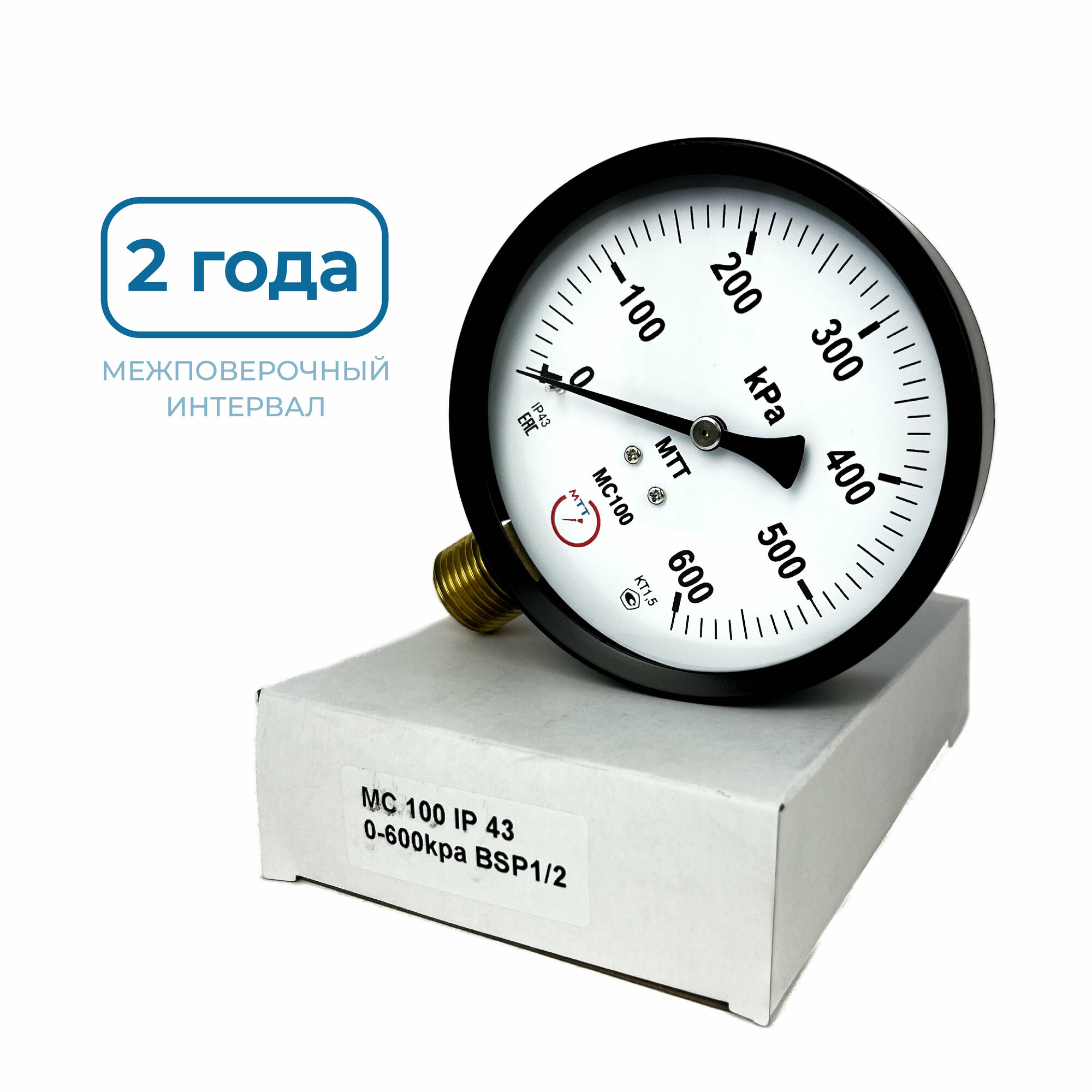 Манометр технический МС100 давление 0-600 кПа (6 бар) резьба BSP1/2 класс точности 1,5 корпус 100 мм. поверка 2 года интересное: