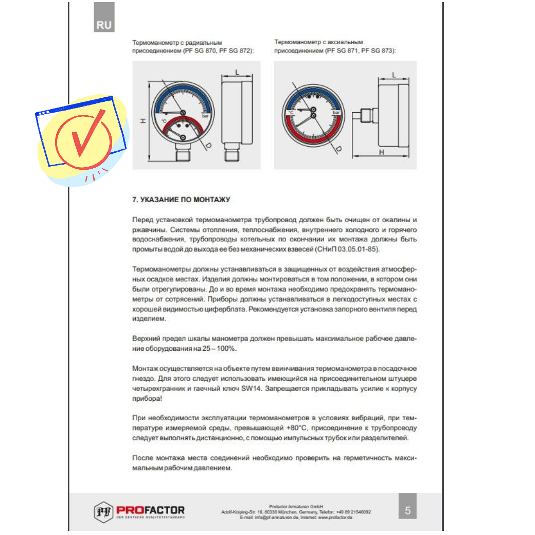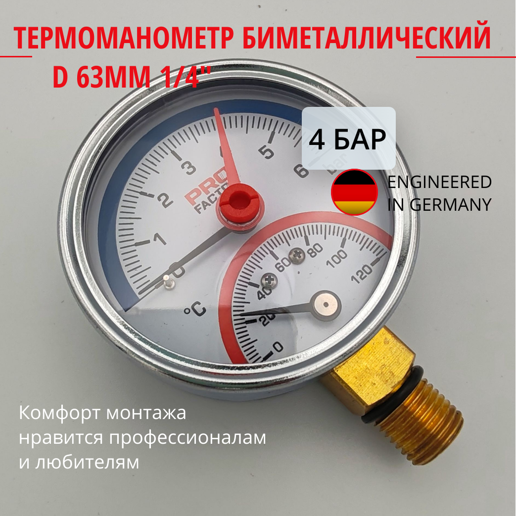 Термоманометр d63 мм, радиальный 1/4" 4 bar; 0-120*C, PF SG 872-4 интересное: