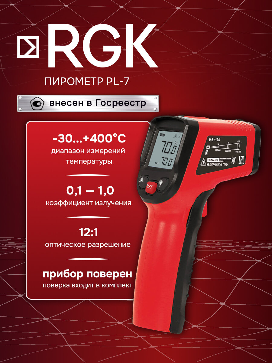Пирометр RGK PL-7 с поверкой / бесконтактный инфракрасный термометр с поверкой интересное: