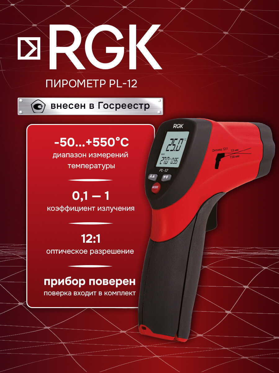 Пирометр RGK PL-12 с поверкой / бесконтактный инфракрасный термометр интересное: