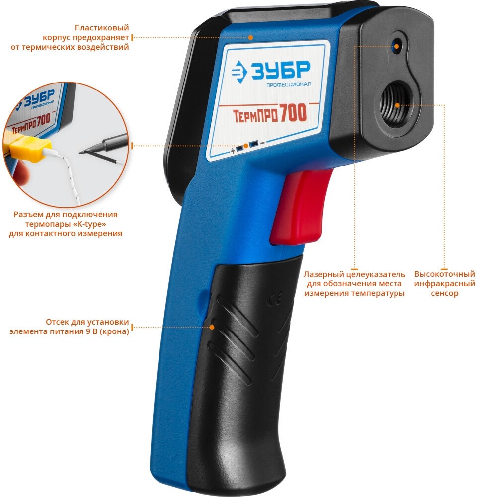 Пирометр инфракрасный ЗУБР Профессионал ТермПро-700 45721-650, -50С +650С интересное: