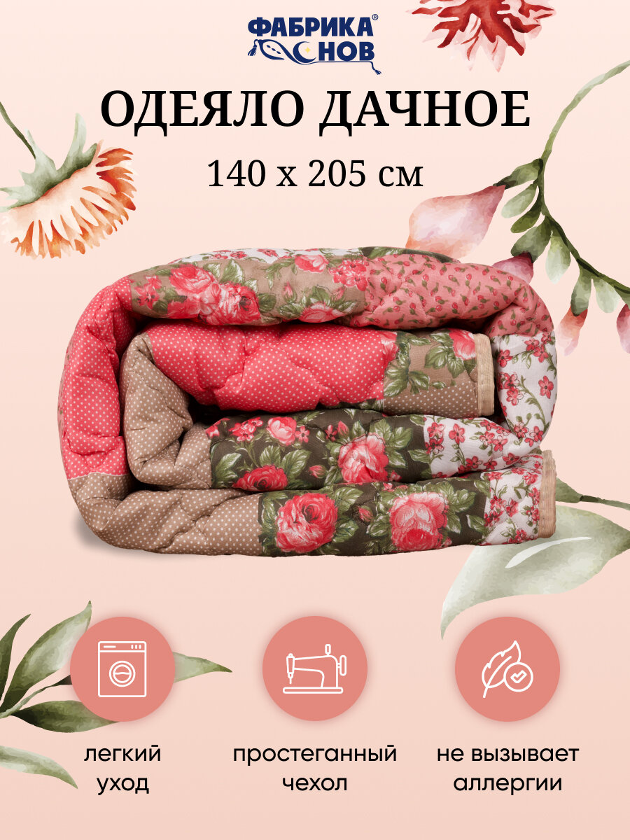 Одеяло 15 спальное, легкое, гипоаллергенное, Фабрика снов Дачное красные розы интересное: