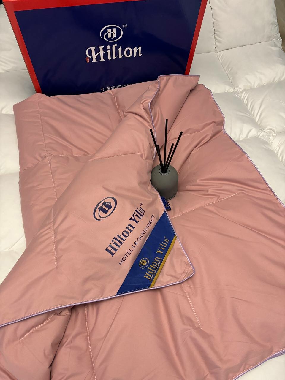 Одеяло Hilton, лебяжий пух, 180х220, стеганое, сатин, всесезонное, как в отеле