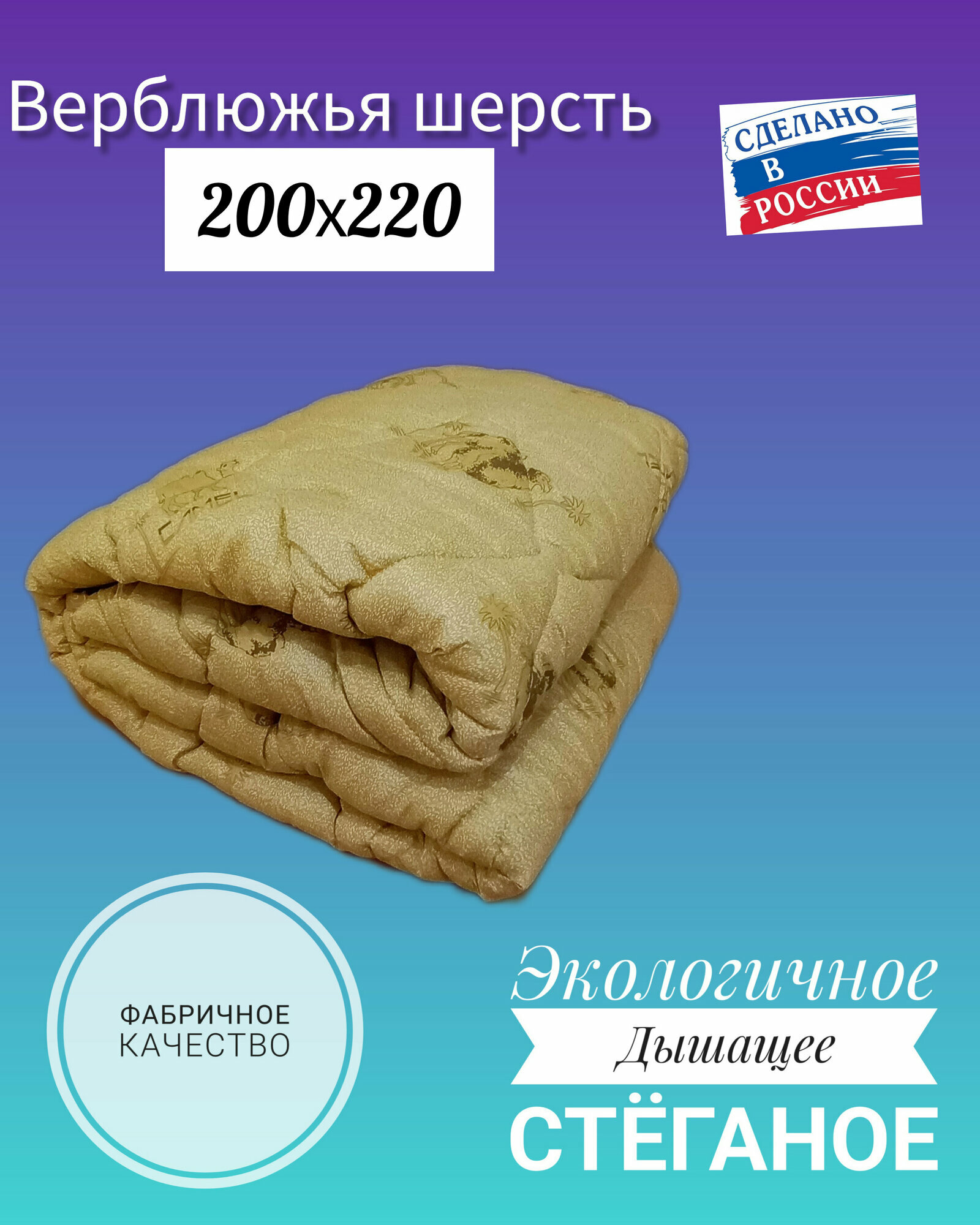 Одеяло Хлопковых снов "Верблюжья шерсть" всесезонное, размер 200 х 220 интересное: