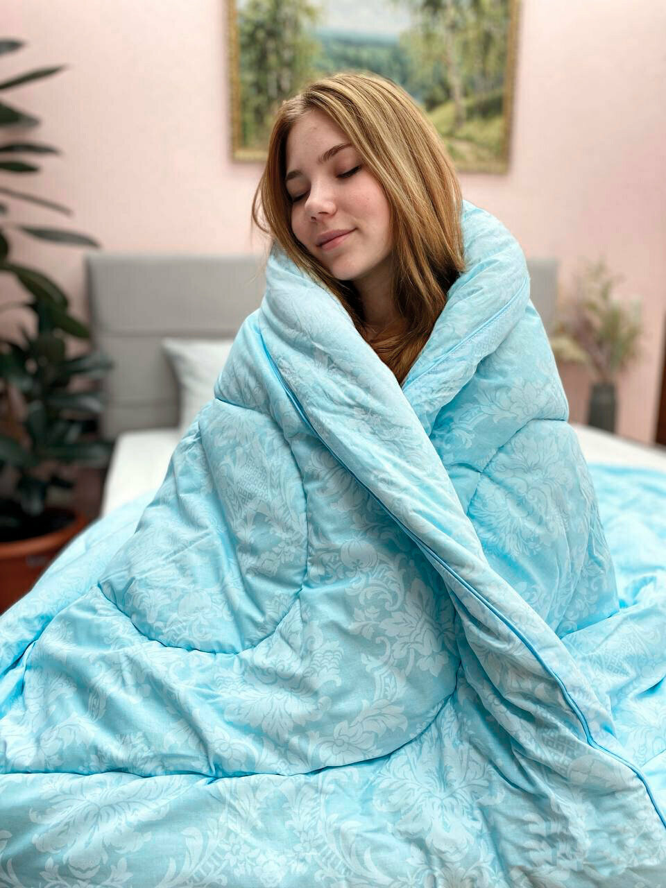 Одеяло SOANA "Лебяжий пух", аквамарин, 1.5 спальный размер, 100 % хлопок