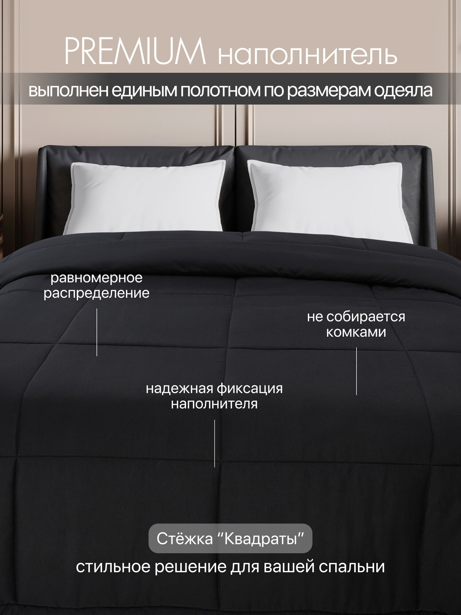 Одеяло Строгановская мануфактура PREMIUM, 200x220, евро, черное интересное:
