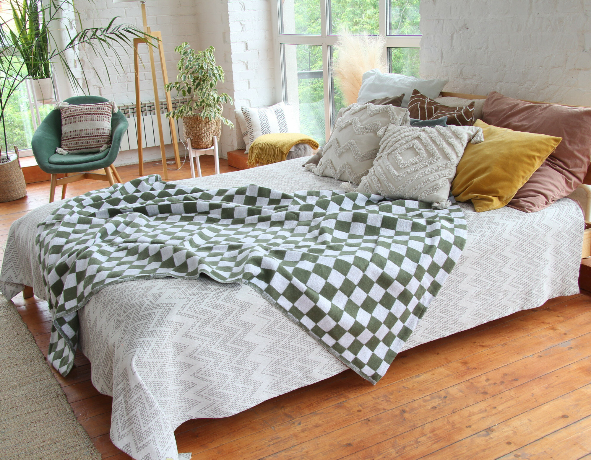 Купить Одеяло хлопок 100% 140х205 см клетка хаки крупная пл.400гр.