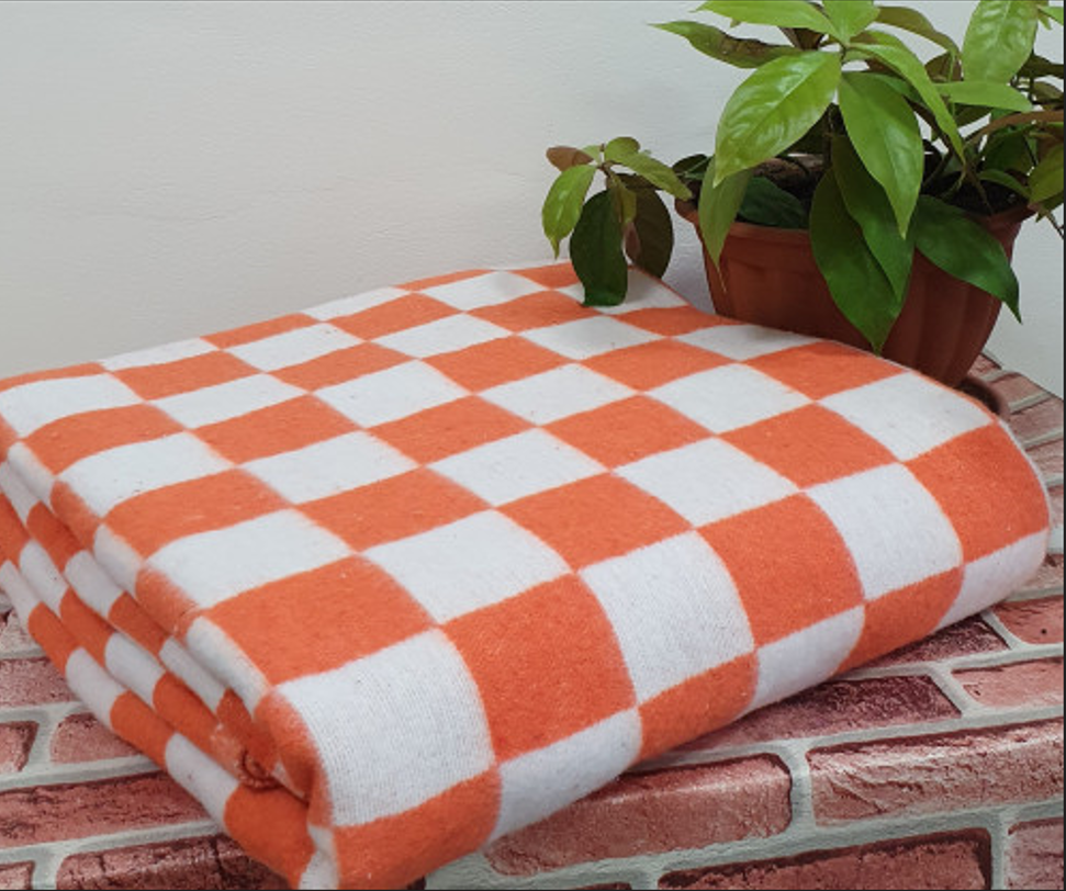 Купить Одеяло хлопок 100% 140х205 см крупная оранжевая клетка пл.400гр.
