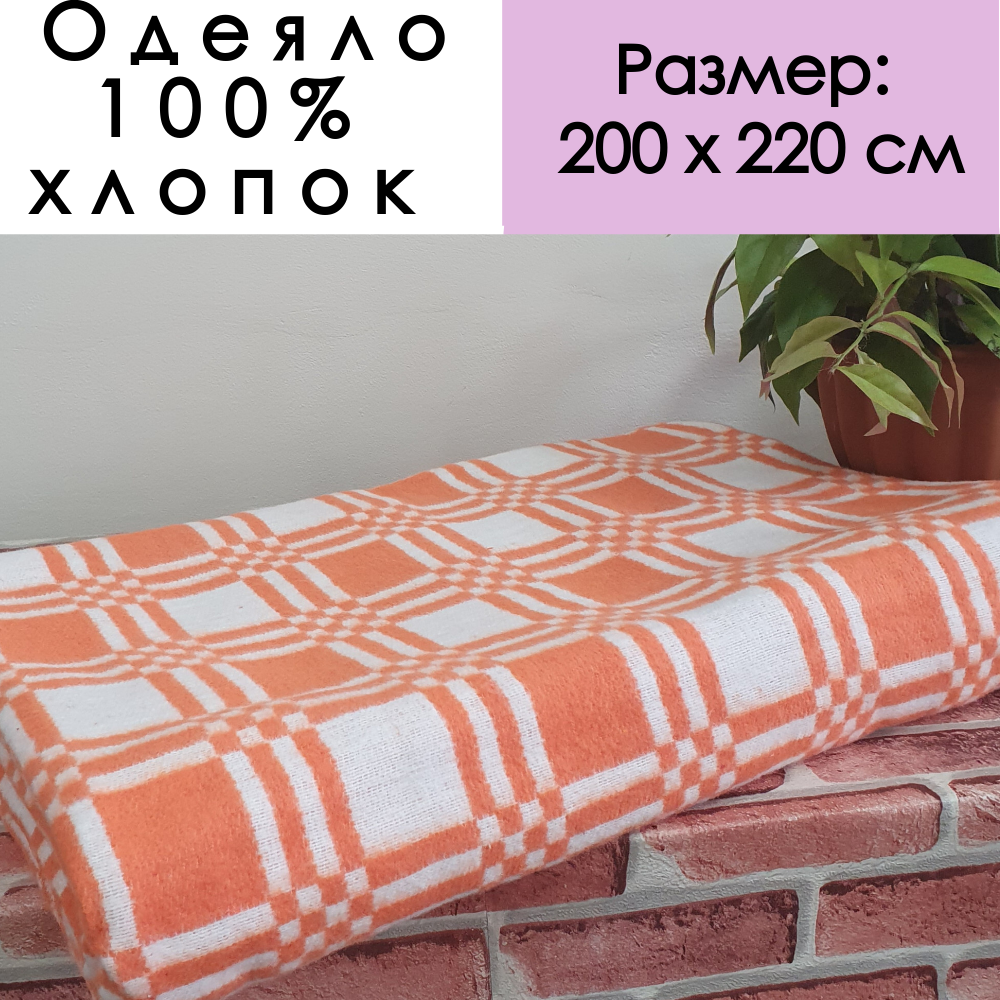 Купить Одеяло 100% хлопок 200x220 клетка оранжевая 400гр