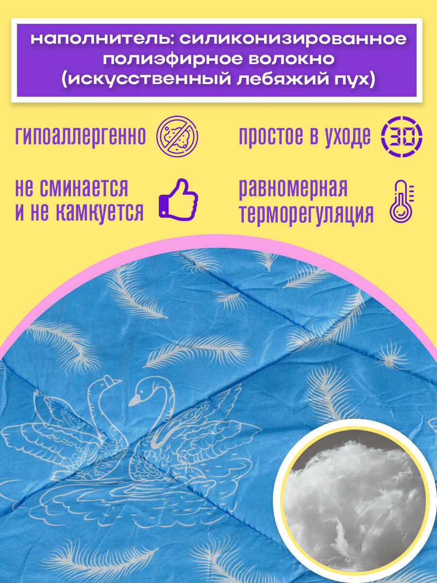 Одеяло всесезонное Лебяжий пух 1.5 спальное 145х210 см легкое, воздушное, идеально для лета и зимы (искусственный пух) интересное: