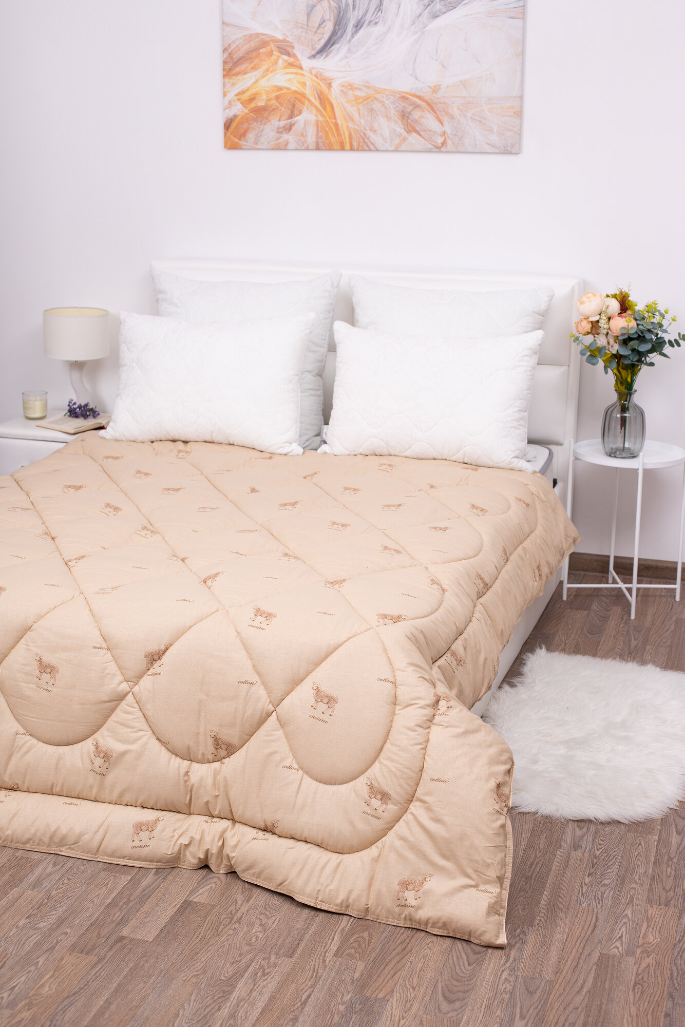 Одеяло Миланика Премиум Лайт, 2-х спальное, всесезонное, бежевое, стёганое, теплое