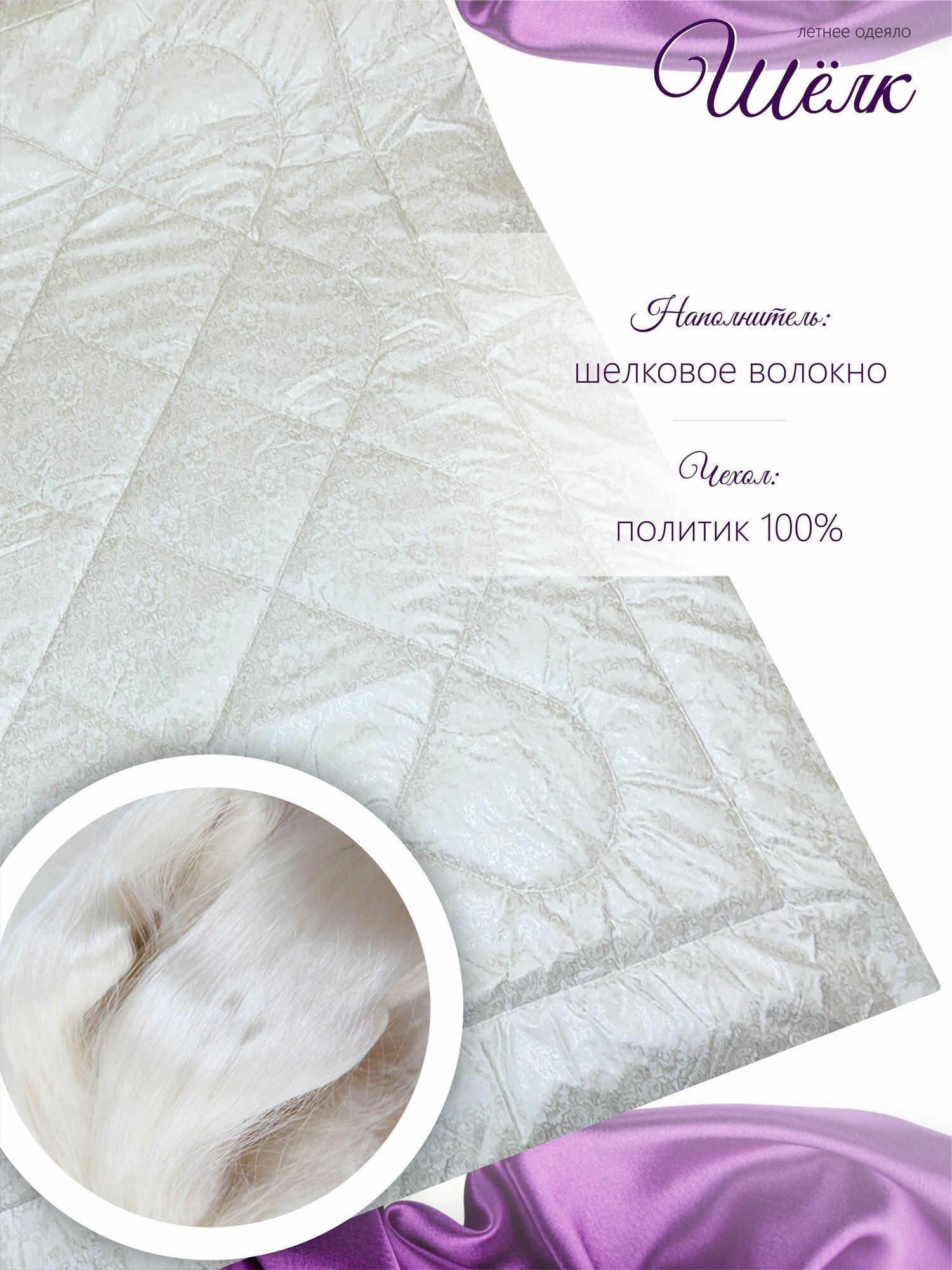 Одеяло 1.5 легкое 140х205 см Шелк, тонкое, стеганое, ткань чехла: тик