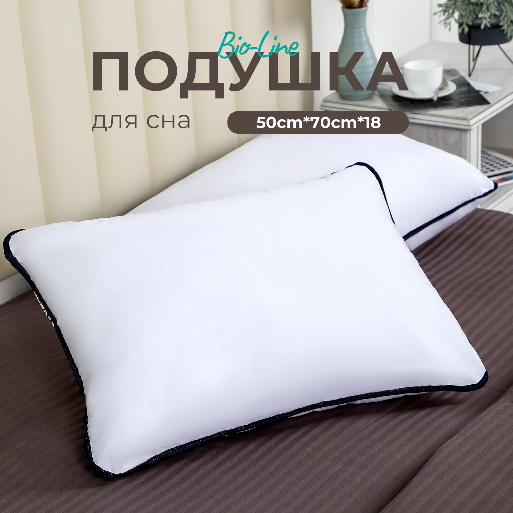 Подушка 50х70 для сна Bio-Line, 3Д наполнитель, анатомическая, съемный чехол хлопок , синий кант интересное:
