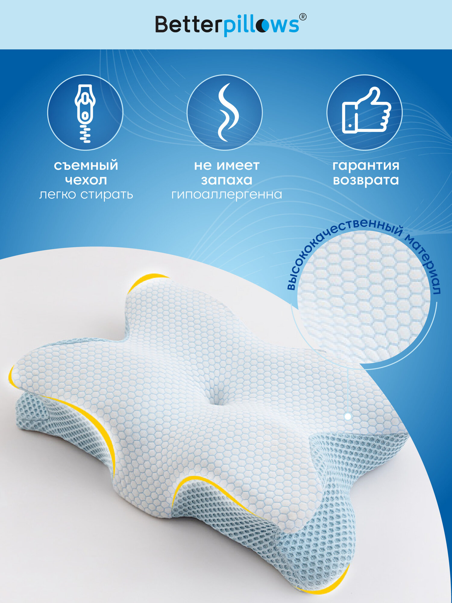 Подушка ортопедическая для сна для взрослых и детей Betterpillows "ICE COMFORT", Memory Foam, охлаждающий эффект 40х66 интересное: