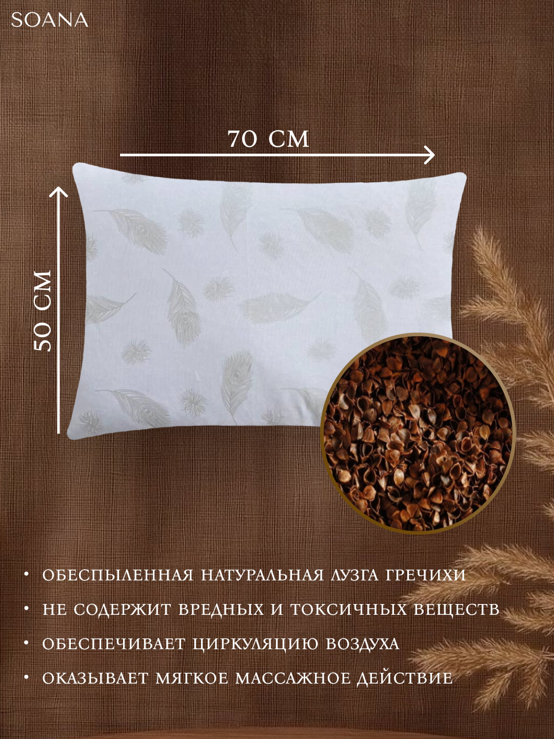 Купить Подушка SOANA, 50x70 см, гречневая шелуха, ортопедическая, средняя степень поддержки