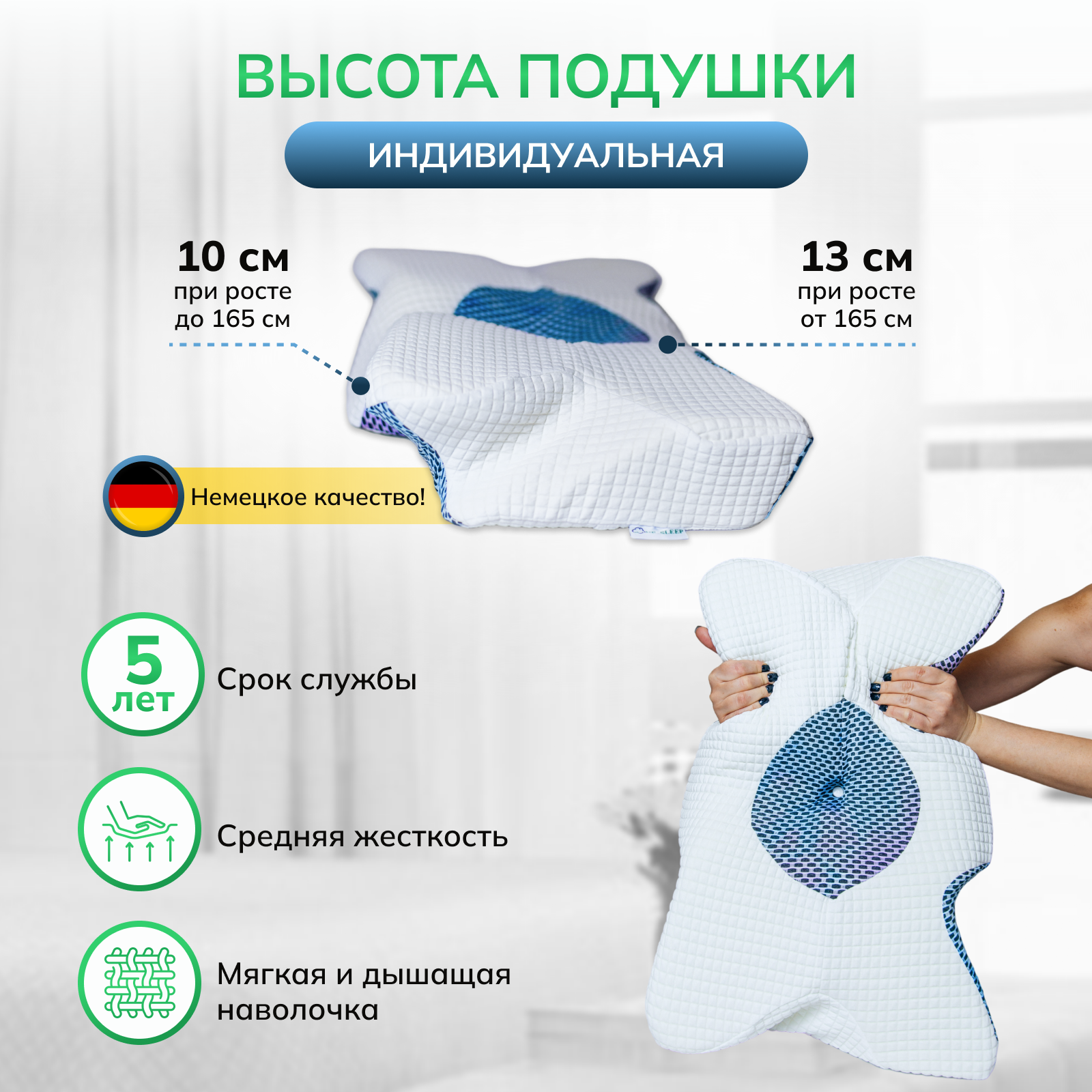 Ортопедическая анатомическая подушка NE_SLEEP с эффектом памяти интересное: