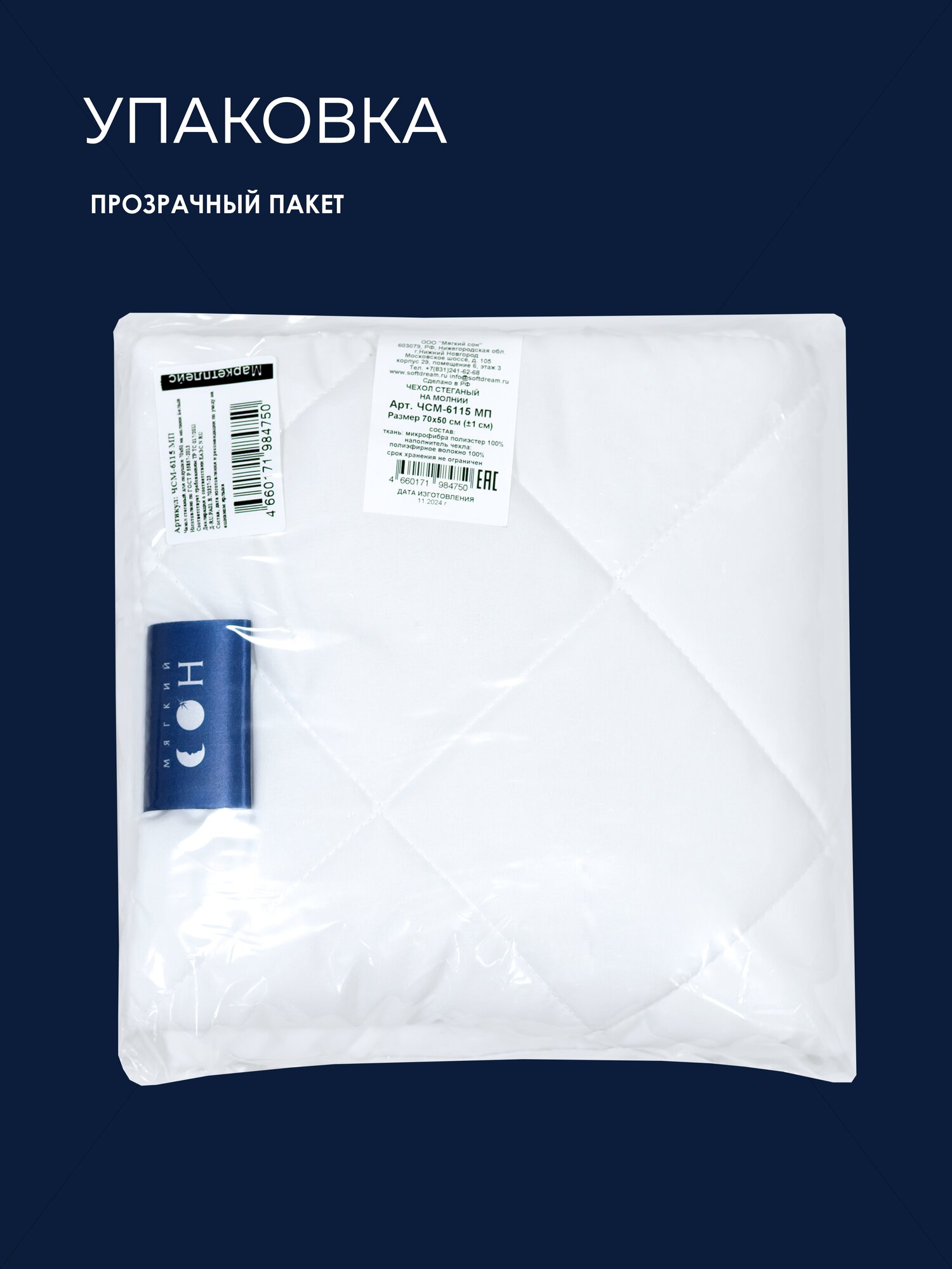 Чехол стеганый, наперник 50х70 на молнии, белый, гипоаллергенный, на подушку