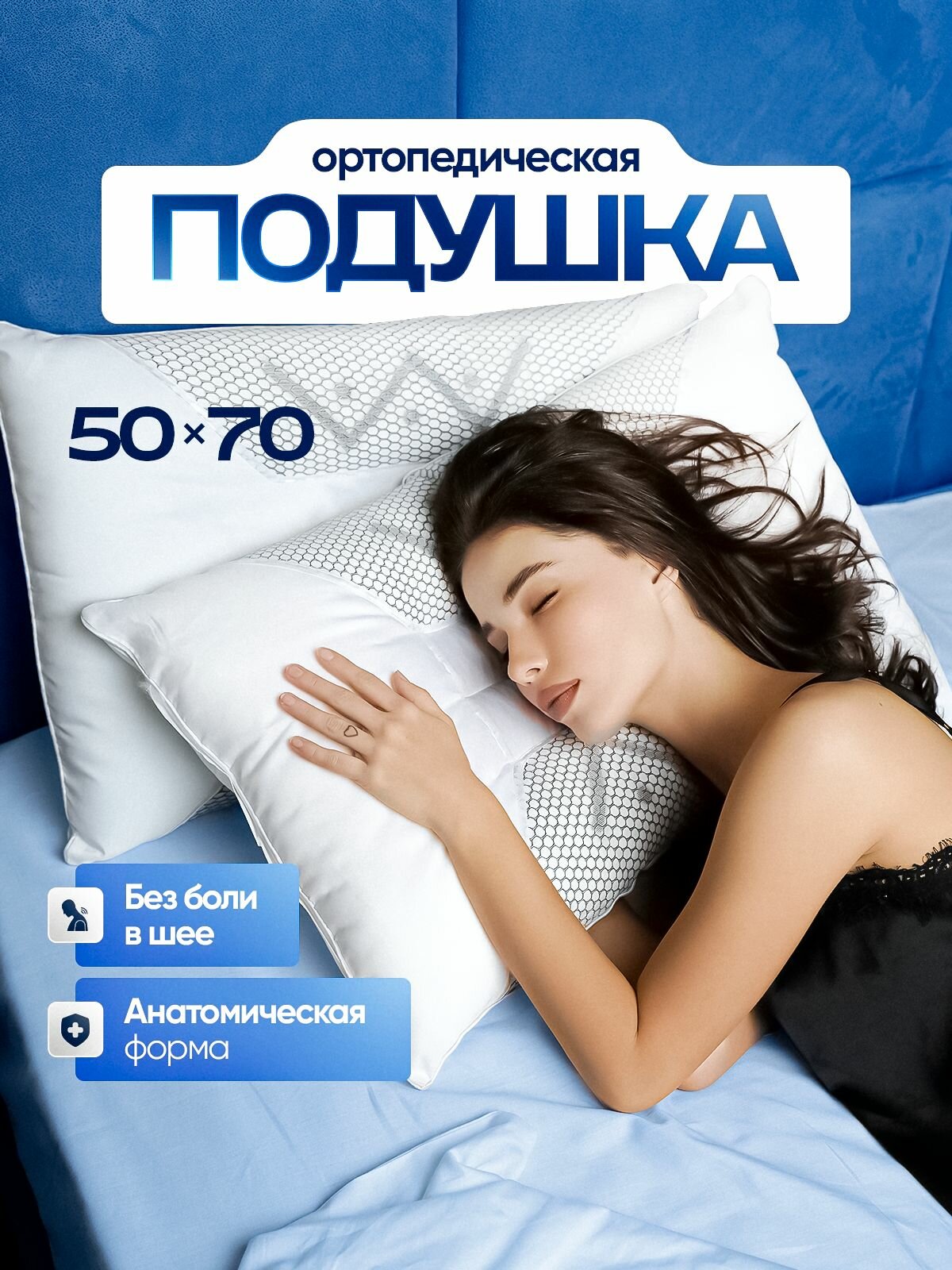 Ортопедическая Подушка 50 см x 70 см, средняя поддержка, хлопок, эффект памяти интересное: