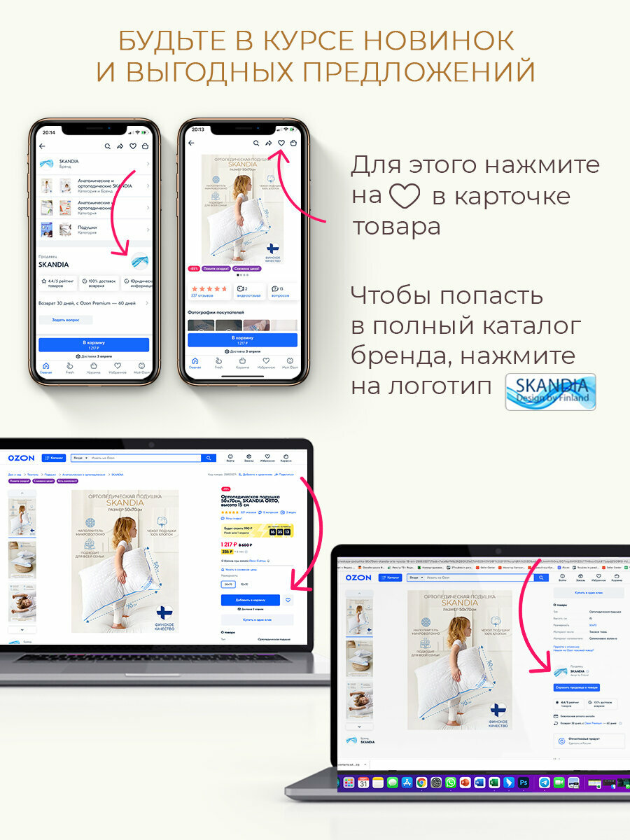 Подушка для здорового и комфортного сна SKANDIA 70x70, высота 15 см интересное: