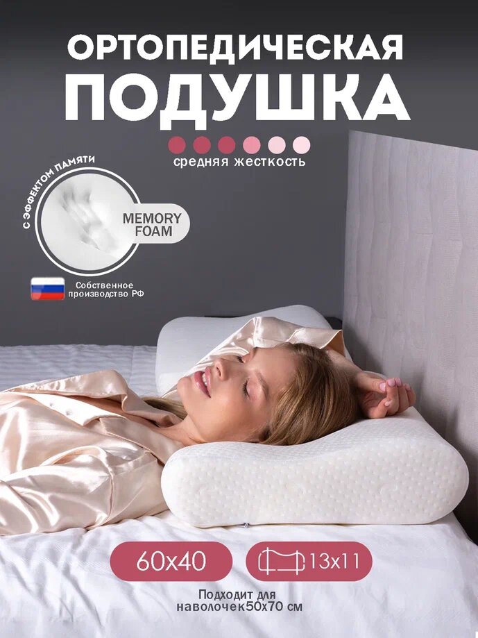 Подушка ортопедическая с эффектом памяти Yarni, для сна Волна 60x40x13х11 см интересное: