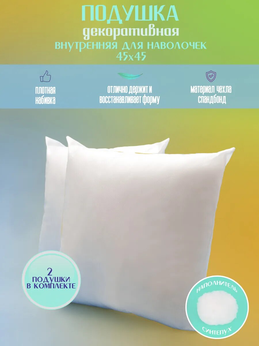 Подушка U&HOME, гипоаллергенный спанбонд, синтепух, 45х45 см интересное: