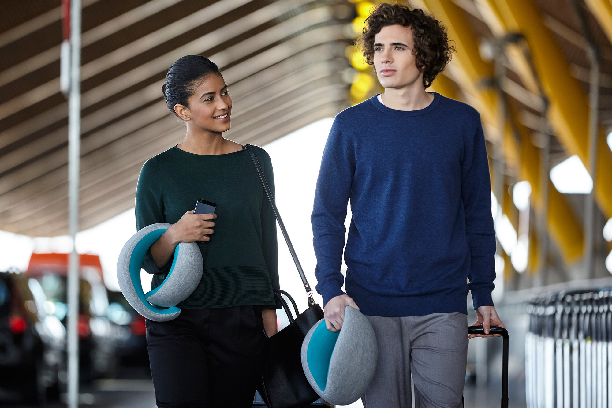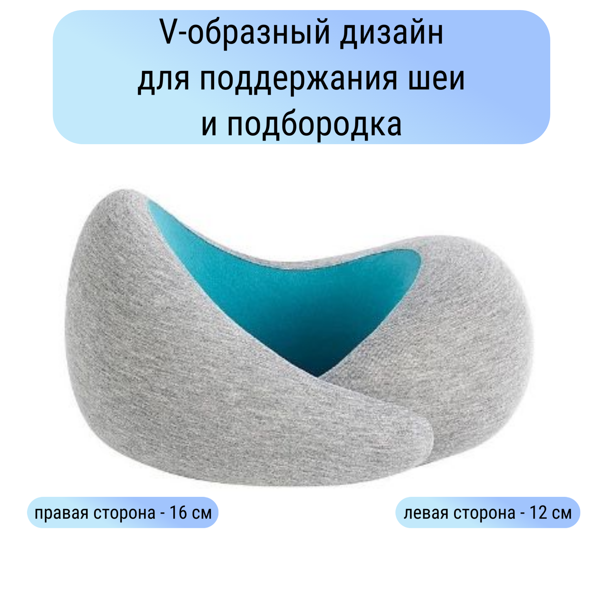 Подушка для путешествий в самолете, поезде с эффектом памяти Ostrich Pillow Go, цвет серый/голубой интересное: