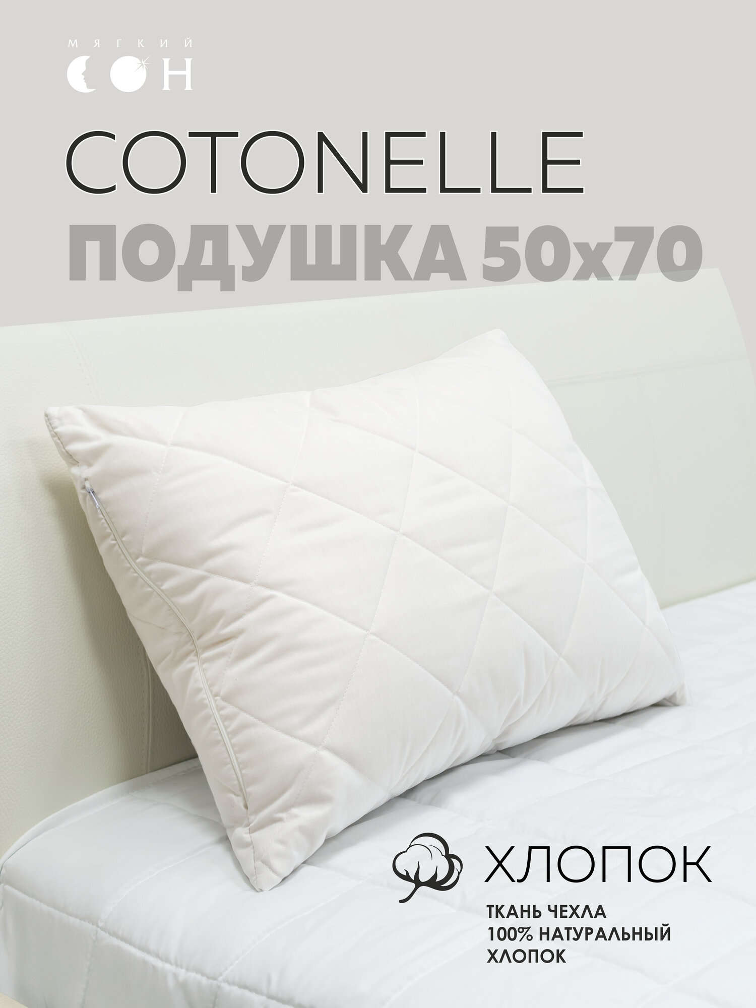 Подушка 50х70 см, Овечья шерсть, "Cotonelle" стеганая, на молнии, для сна, регулируемая высота, хлопок интересное: