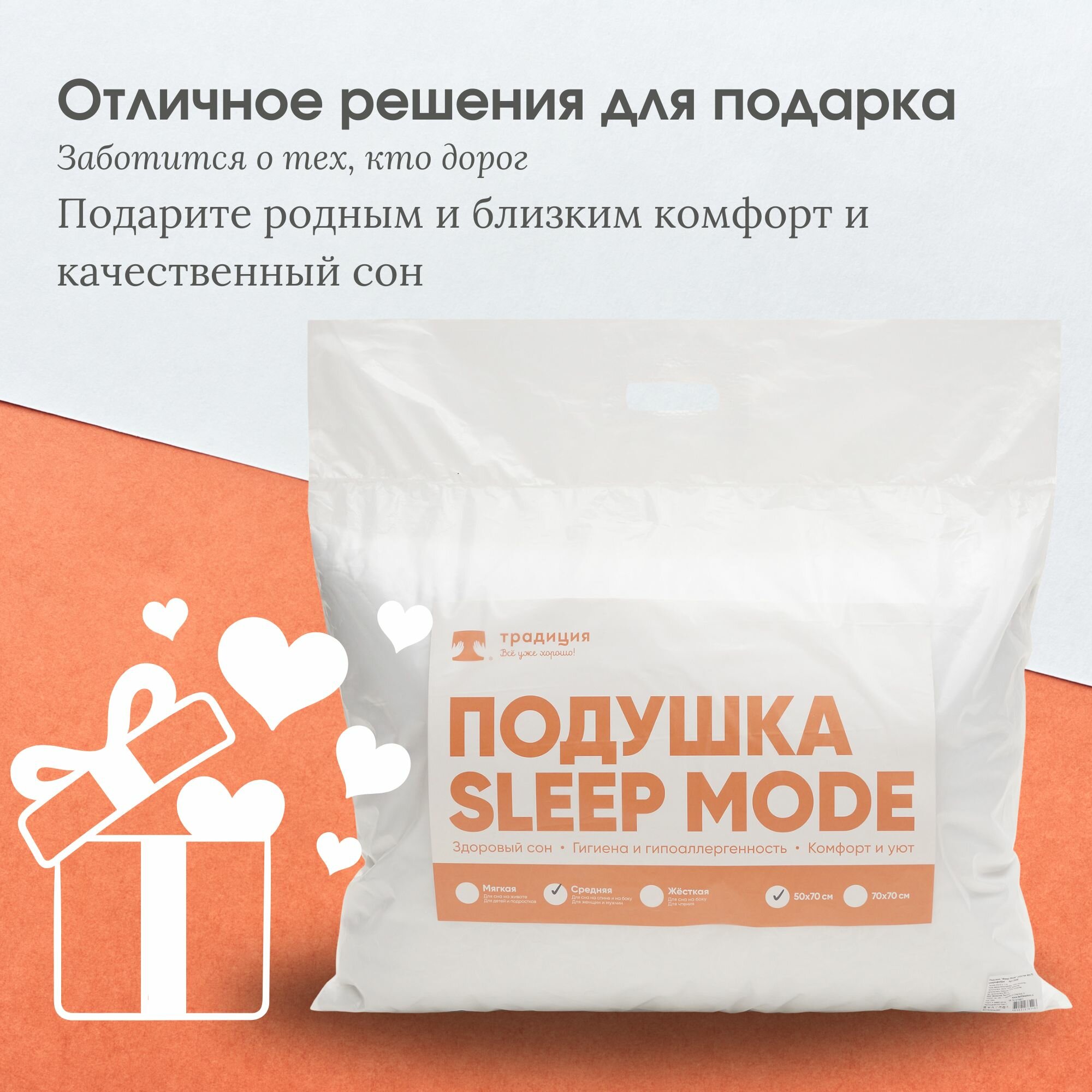 Подушка Традиция "Sleep Мode" жесткая 50х70, микрофибра 3 шт интересное: