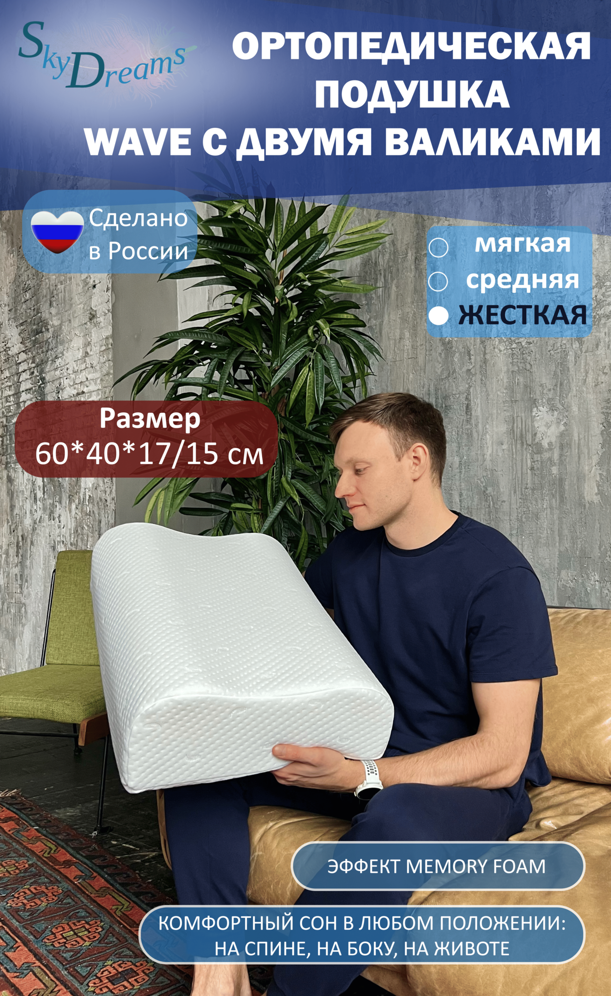 Купить SkyDreams Ортопедическая подушка с эффектом памяти 60*40*17/15 см, ЖЁСТКАЯ