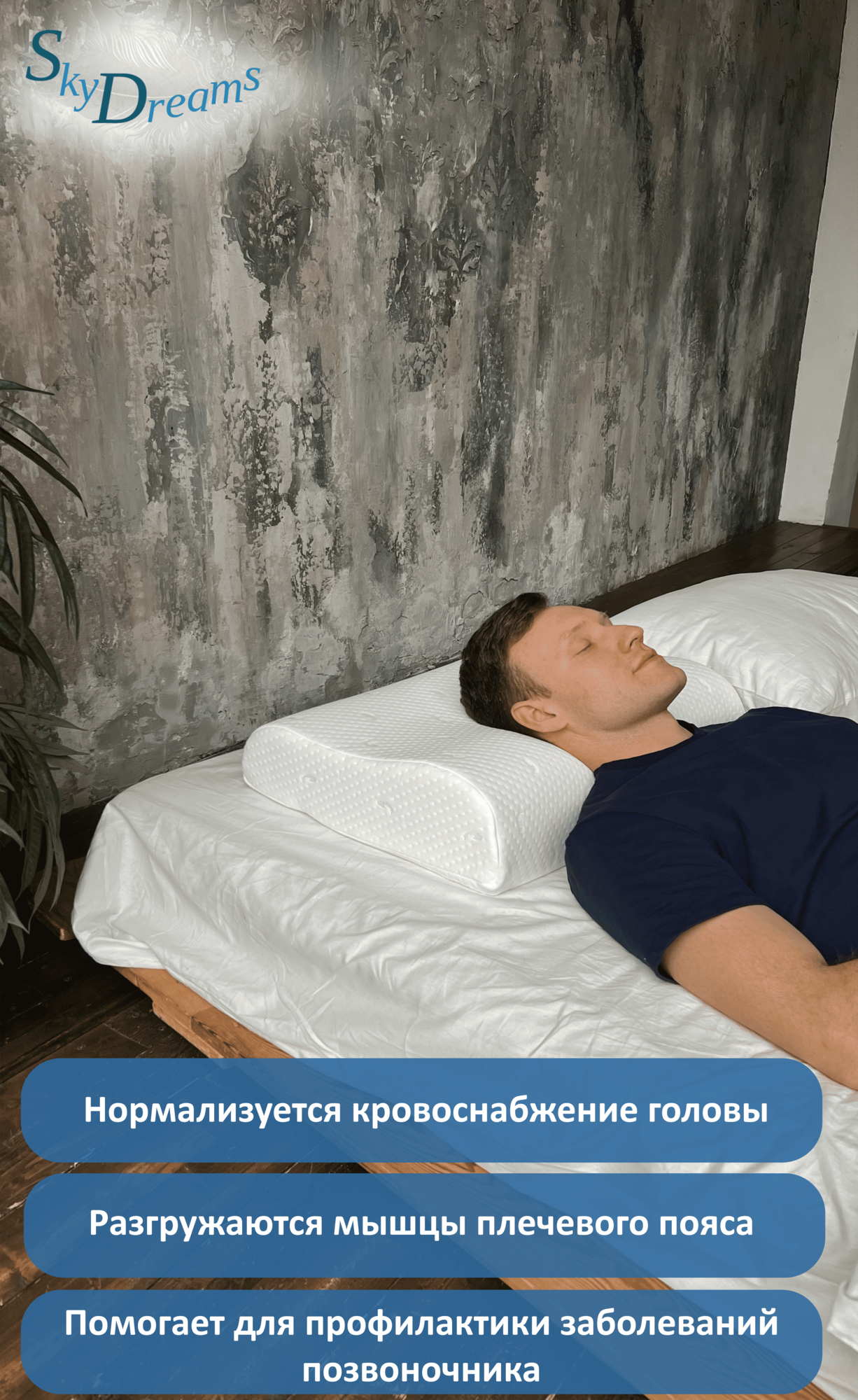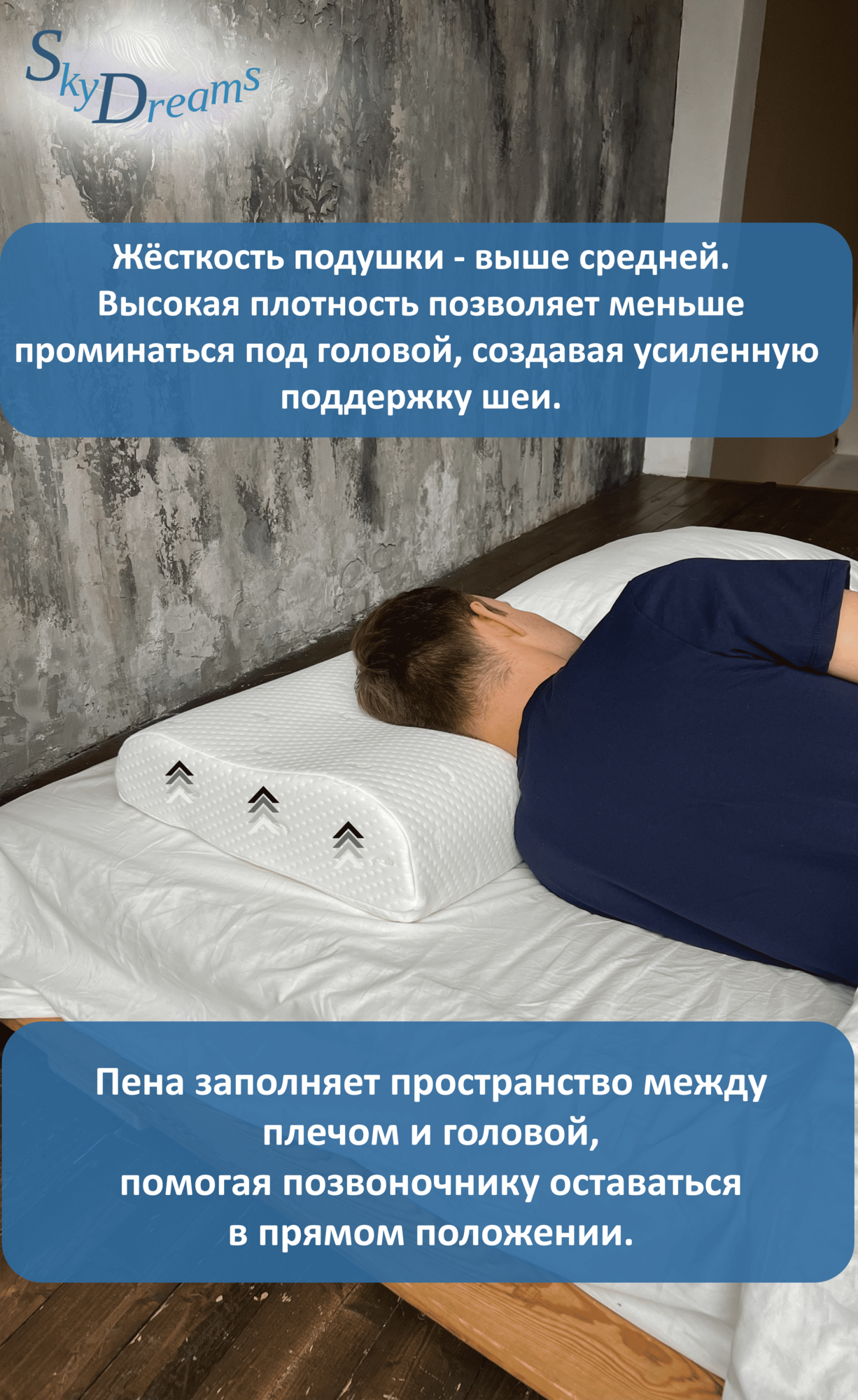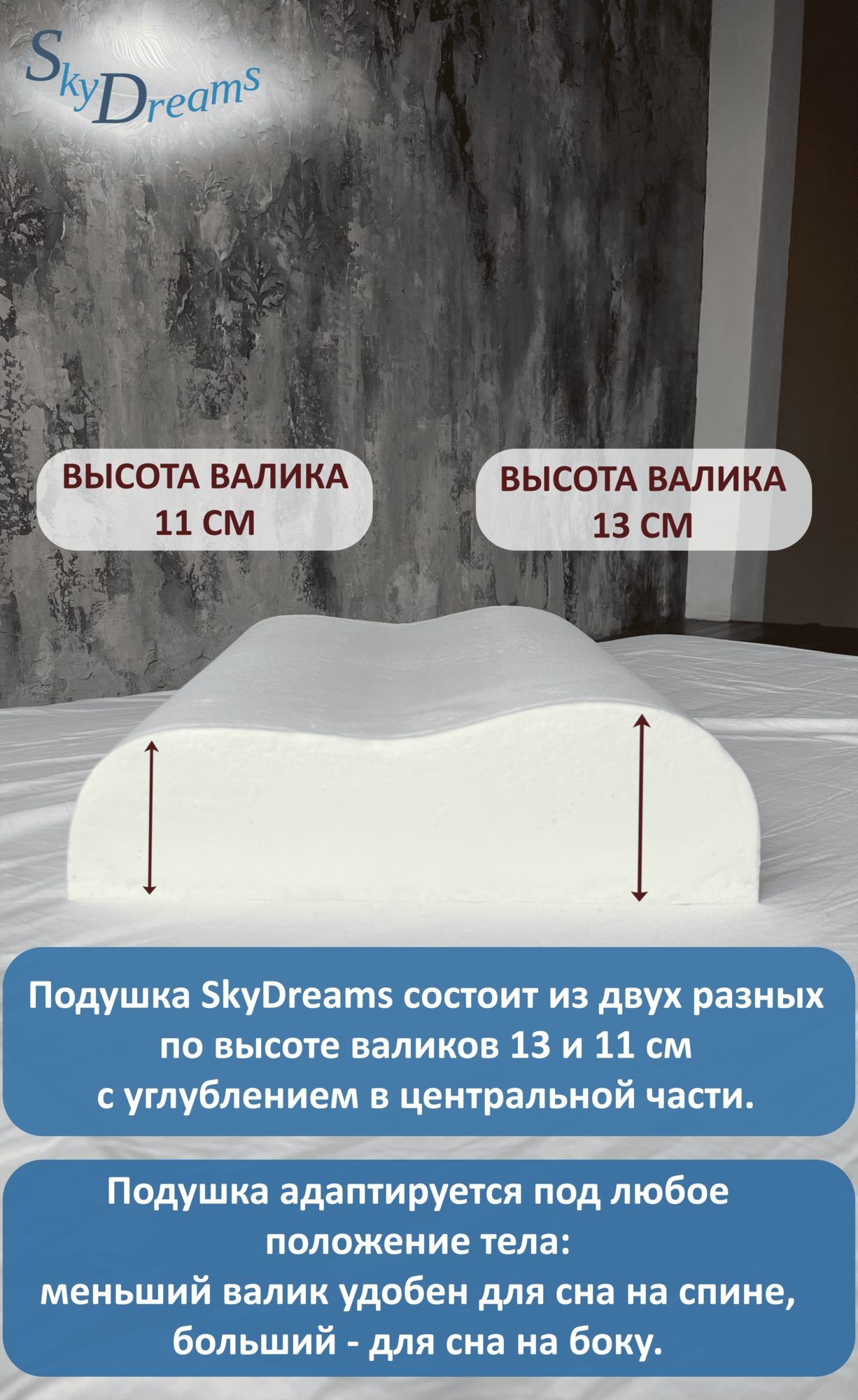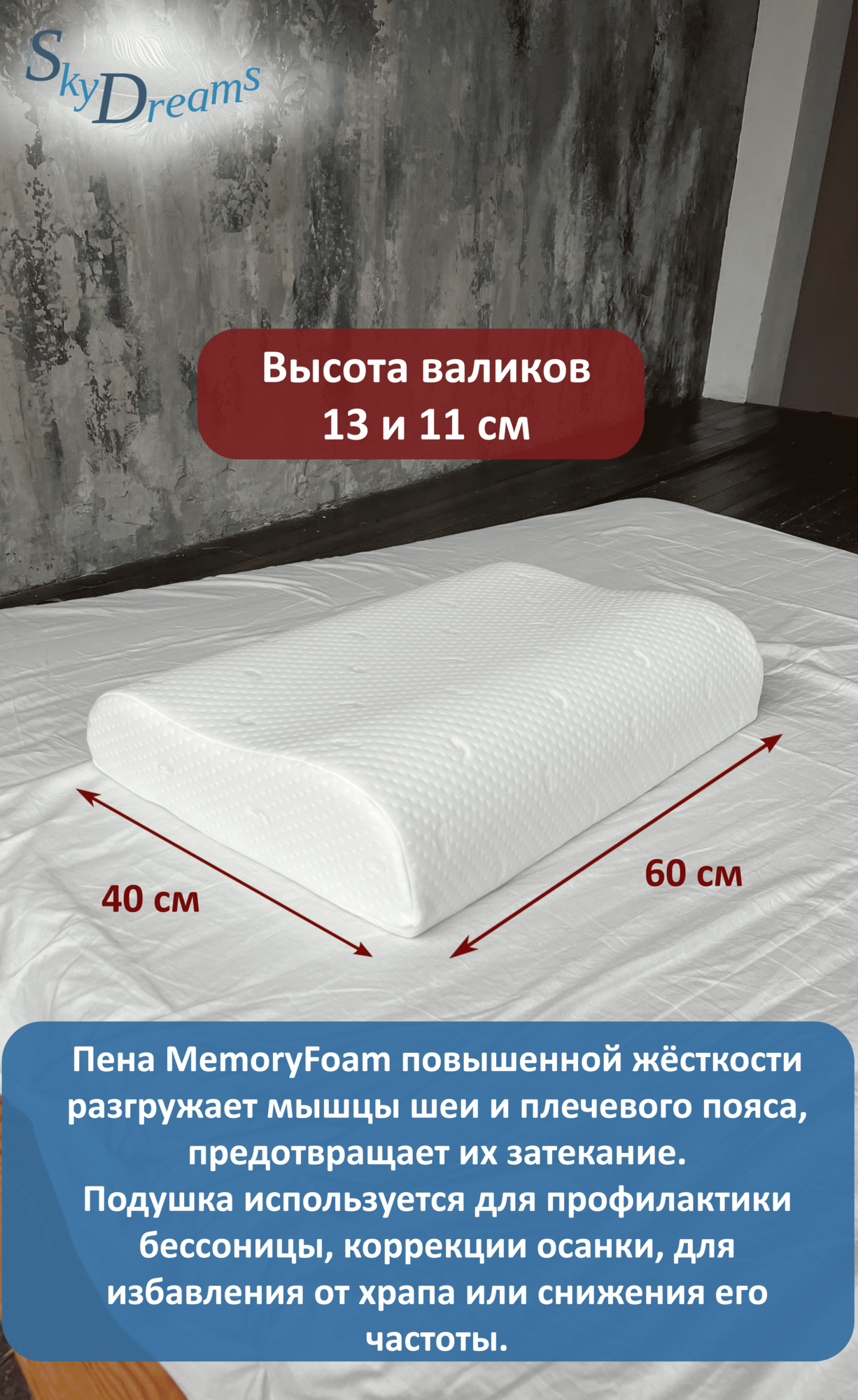 SkyDreams Ортопедическая подушка с эффектом памяти 60*40*13/11 см, ЖЁСТКАЯ интересное: