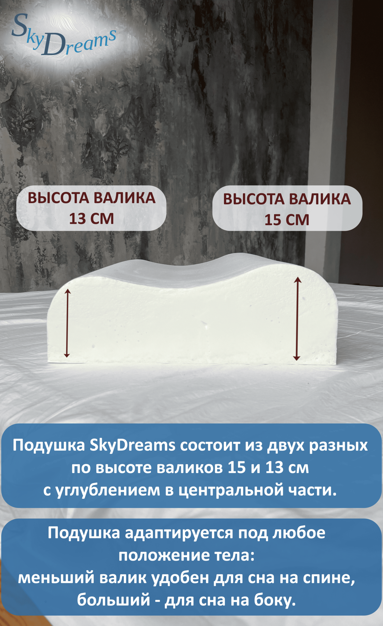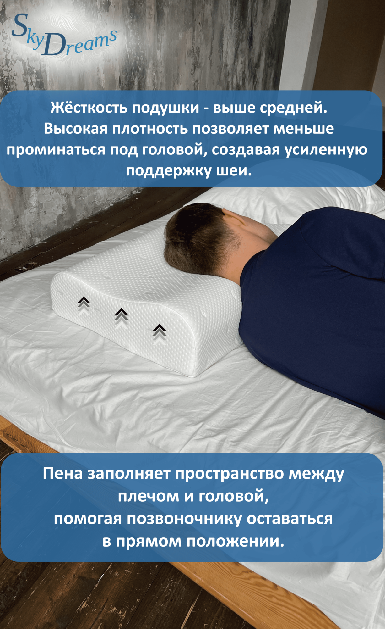 SkyDreams Ортопедическая подушка с эффектом памяти 60*40*15/13 см, ЖЁСТКАЯ интересное: