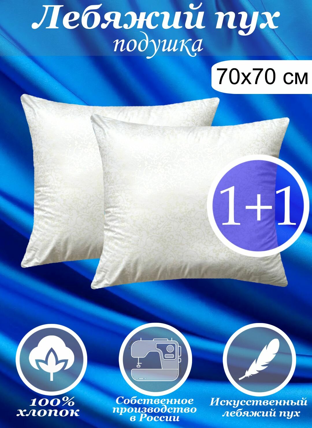 Подушки Kerimov Group, 70x70см, 2 шт, гипоаллергенные, хлопок 100%, микроволокно "Лебяжий Пух"