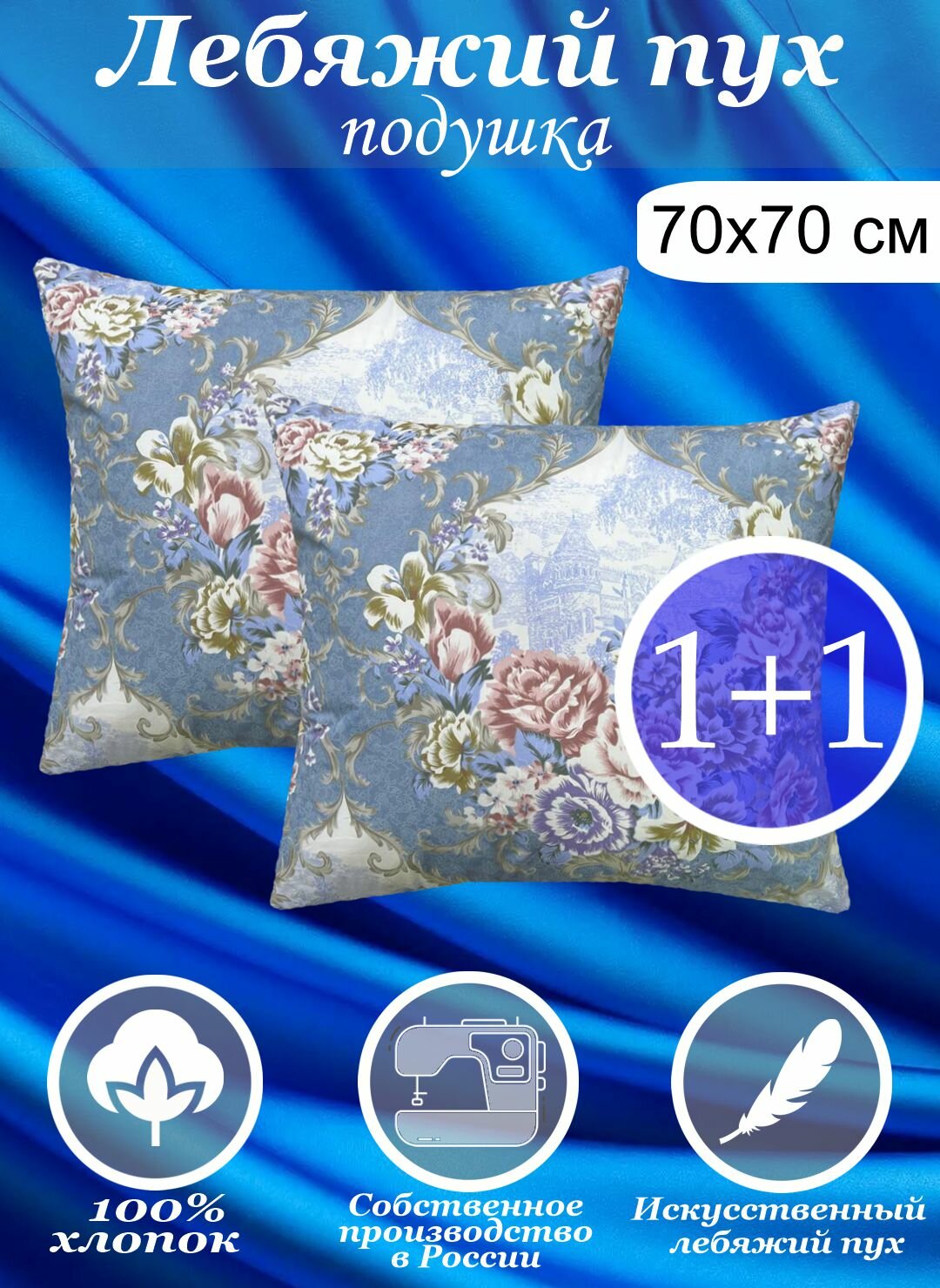 Подушки Kerimov Group, 70x70см, 2 шт, гипоаллергенные, хлопок 100%, микроволокно "Лебяжий Пух"