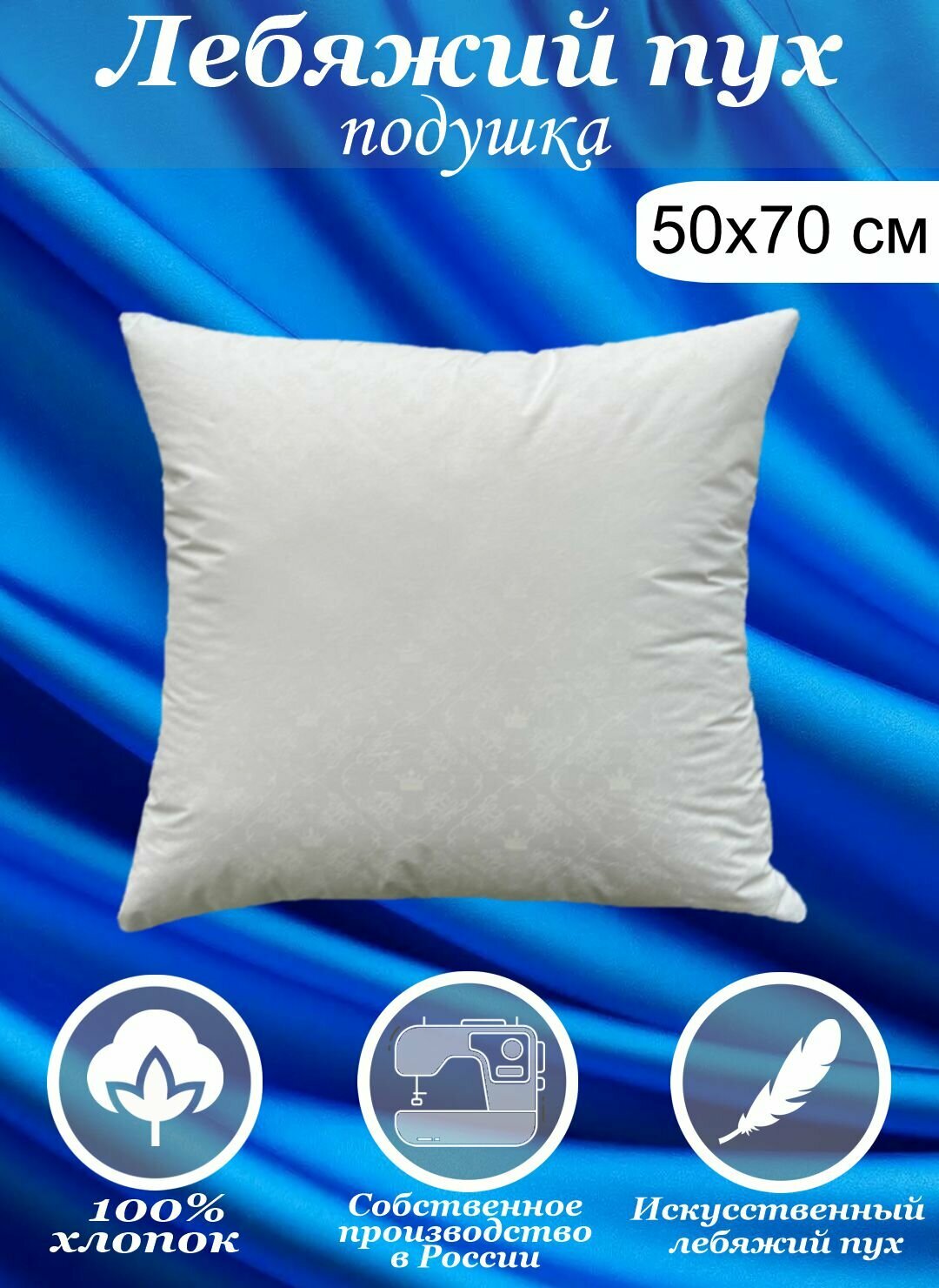 Подушка для сна Kerimov Group, 50x70 см, хлопок, гипоаллергенная, белая и голубая