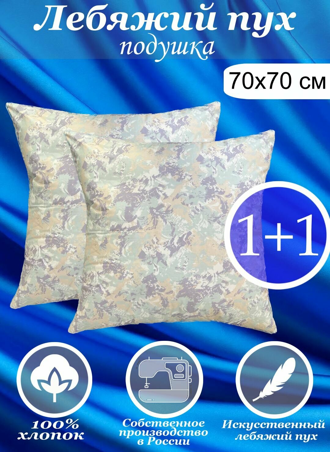Подушки Kerimov Group, 70x70см, 2 шт, гипоаллергенные, хлопок 100%, микроволокно "Лебяжий Пух"