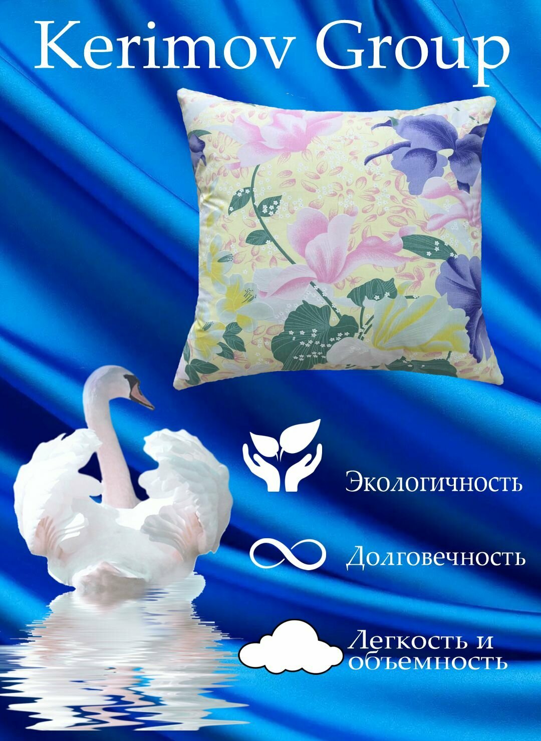 Подушка Kerimov Group, 70x70см, гипоаллергенная, средняя поддержка