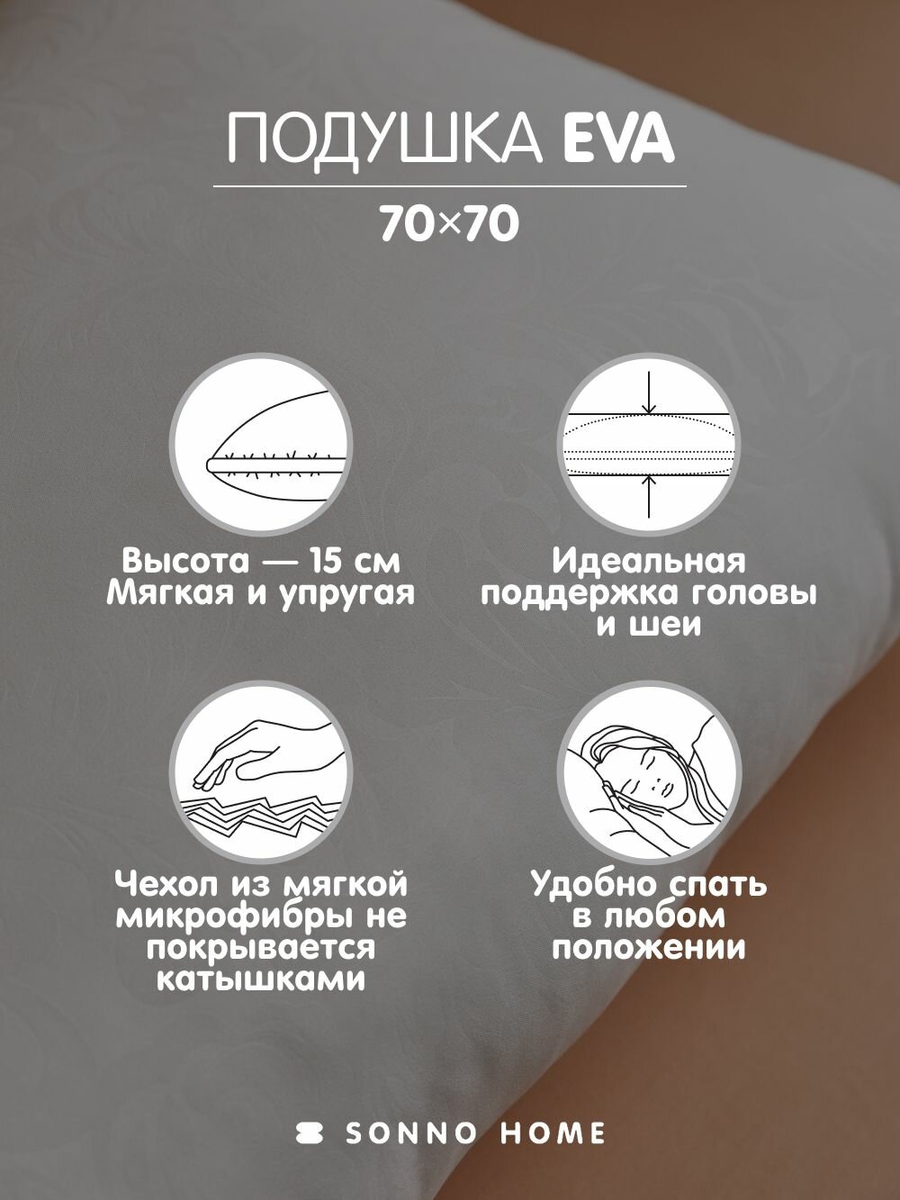 Sonno Home Подушка для сна EVA 70x70х15 см, мягкая и упругая, гипоаллергенный наполнитель Amicor TM интересное: