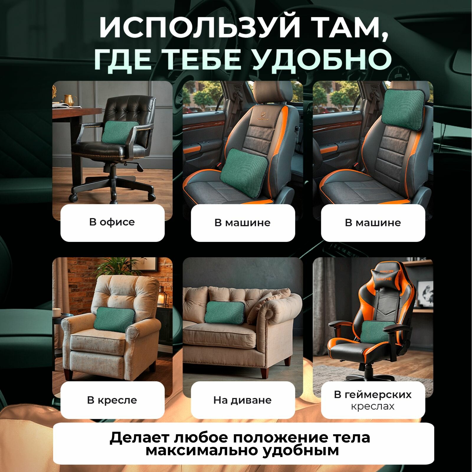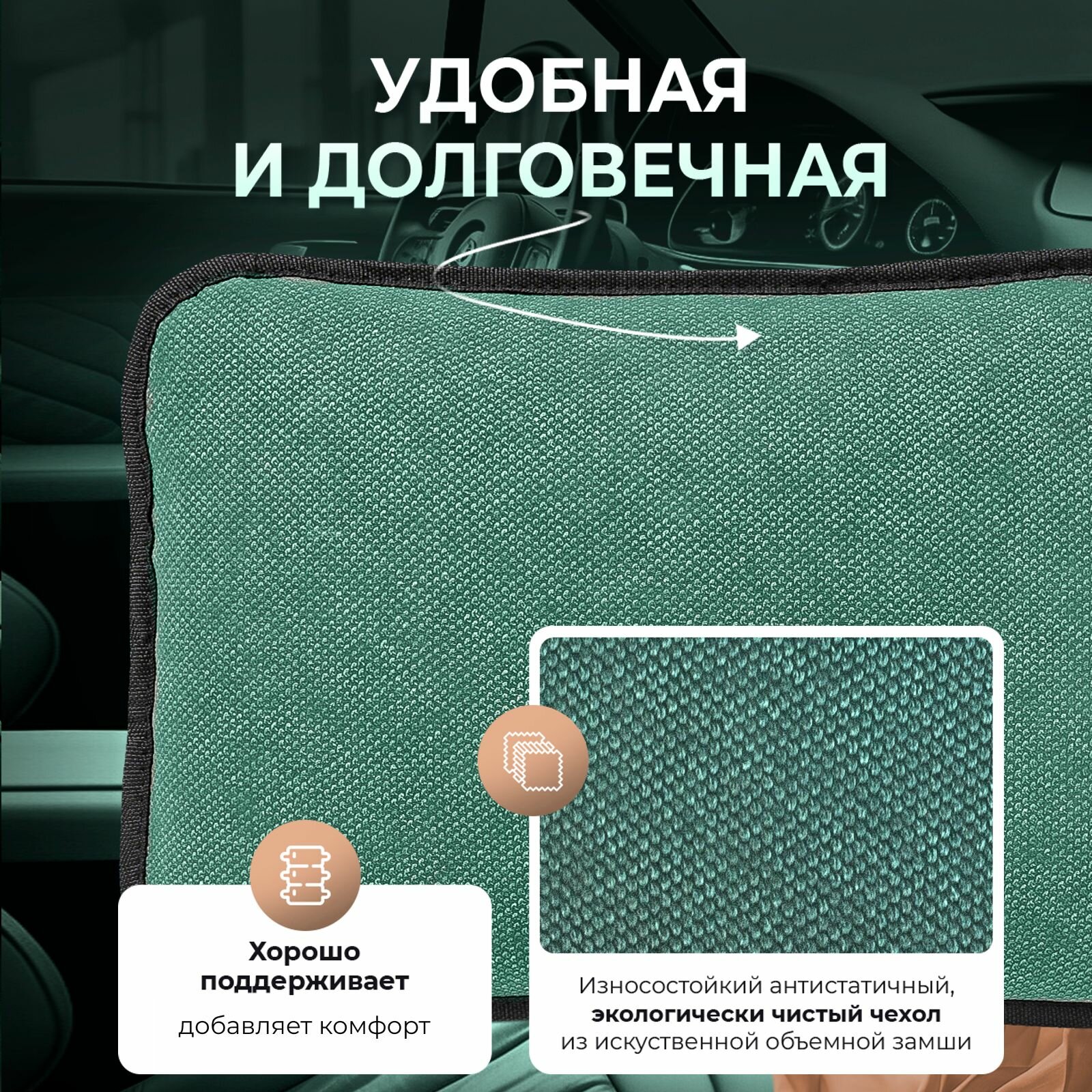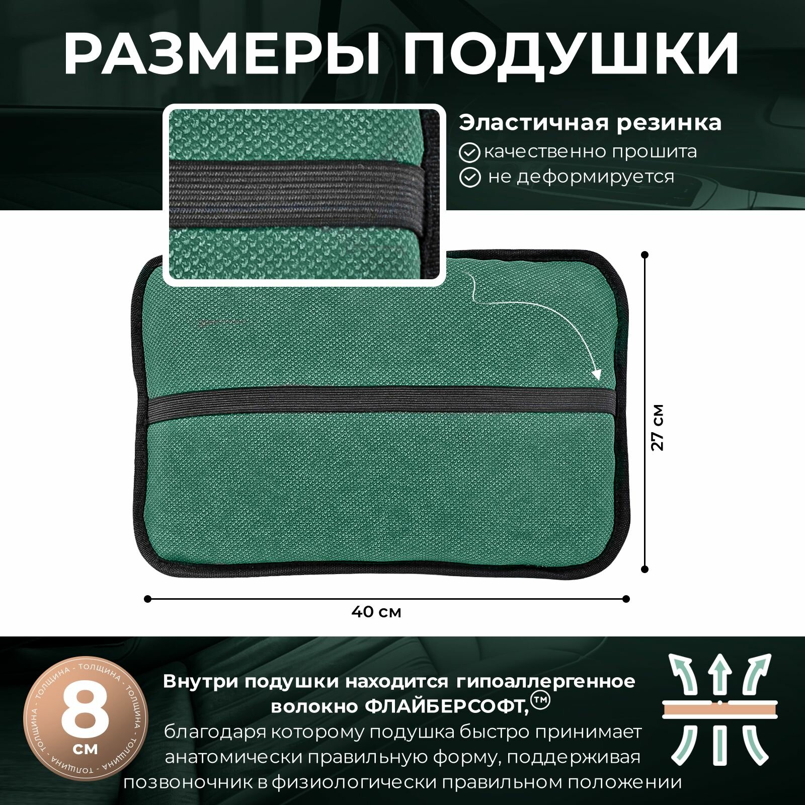 Подушка A2DM на кресло, для спины, двусторонняя, средняя поддержка, зеленая, 47х28х8 см интересное: