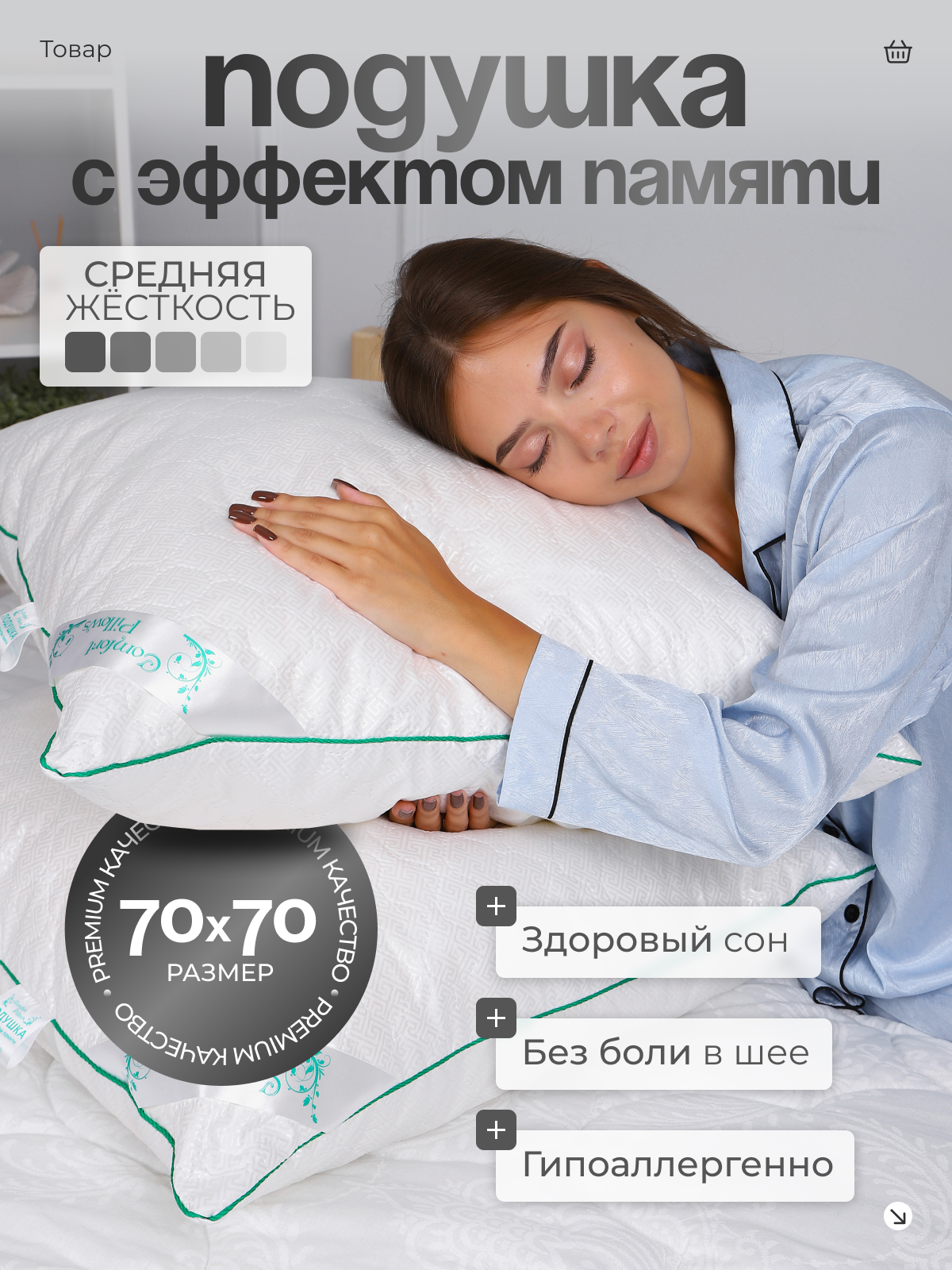 Подушка для сна с эффектом памяти 70х70, ортопедическая, белая интересное: