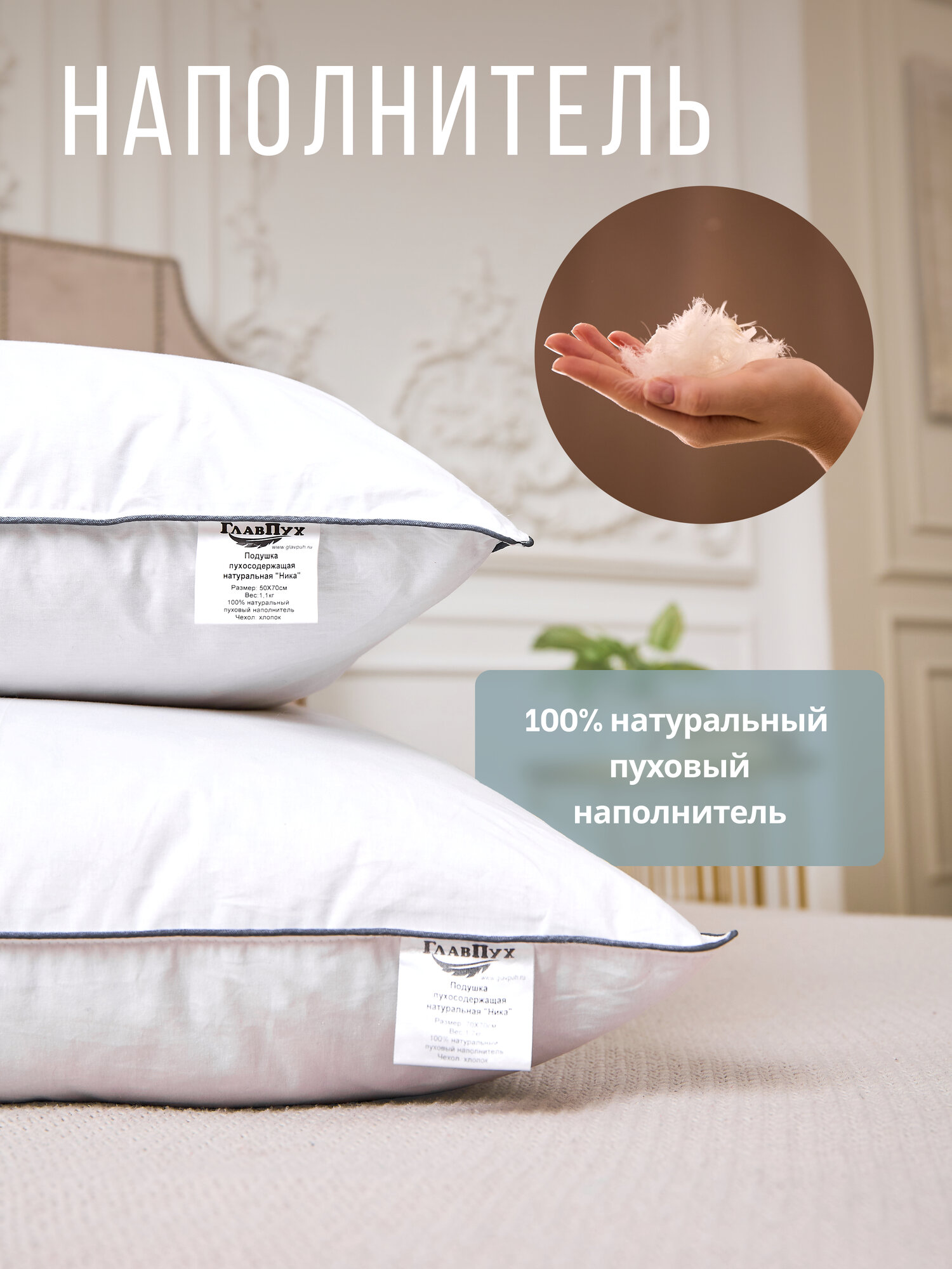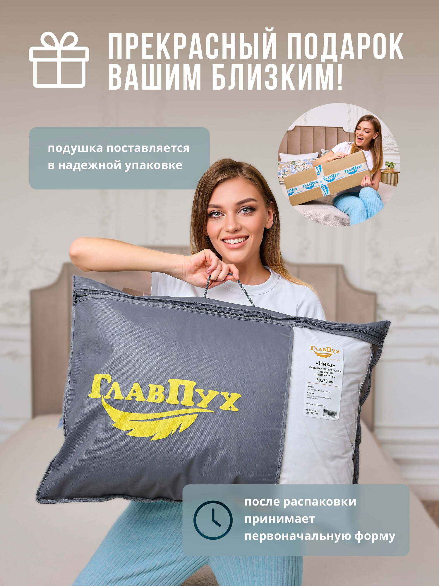 Подушка ГлавПух "Ника", натуральная, пуховая, 50x70 см, белая интересное: