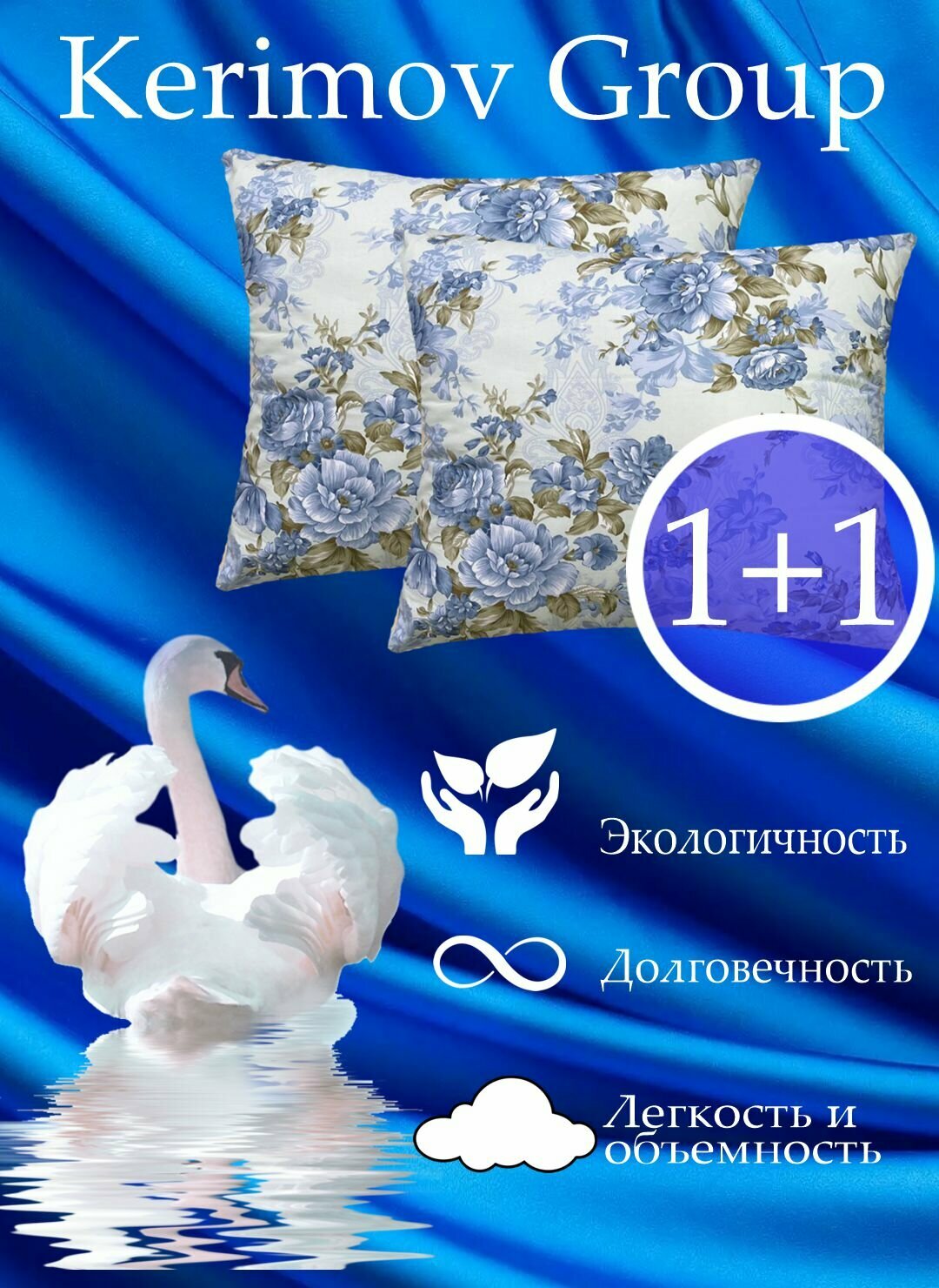 Подушка Kerimov Group "Лебяжий Пух", 70x70, анатомическая, гипоаллергенная, 2 шт