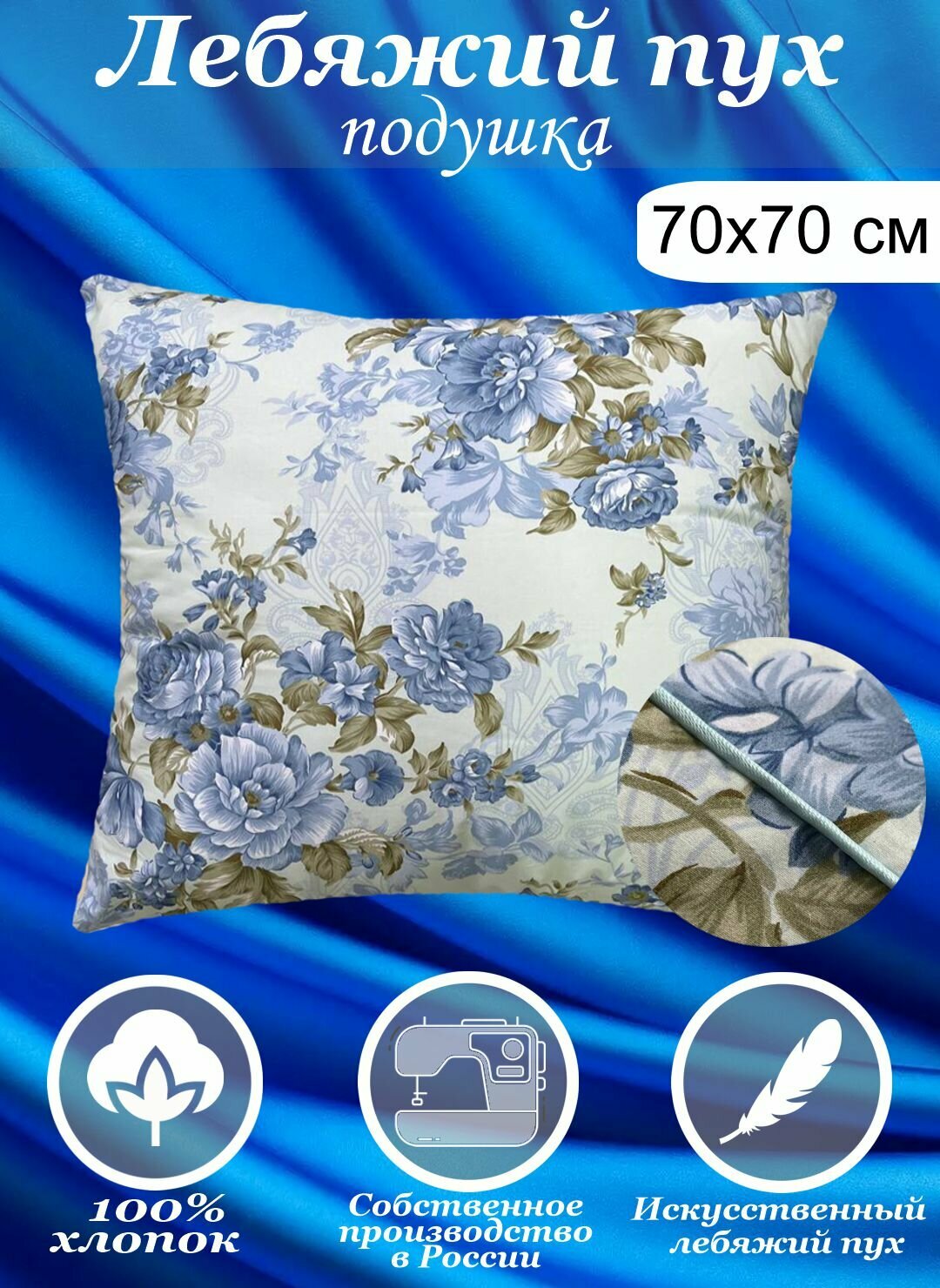 Подушка Kerimov Group, 70x70 см, анатомическая, гипоаллергенная, синяя
