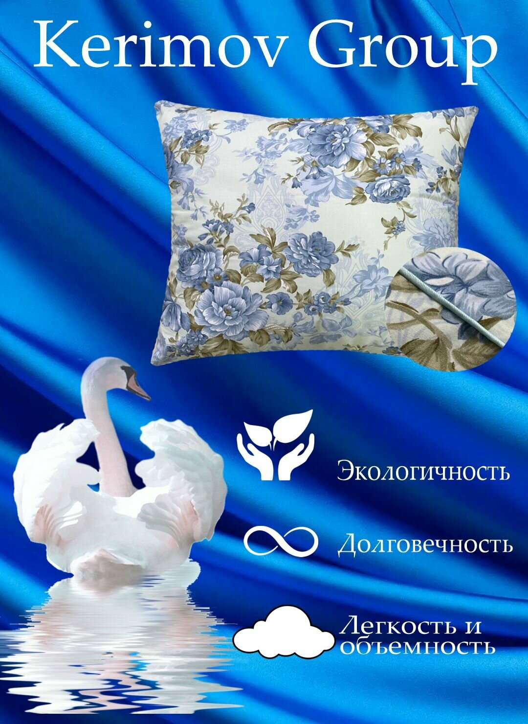 Подушка Kerimov Group "Лебяжий Пух", анатомическая, 50x70 см, гипоаллергенная