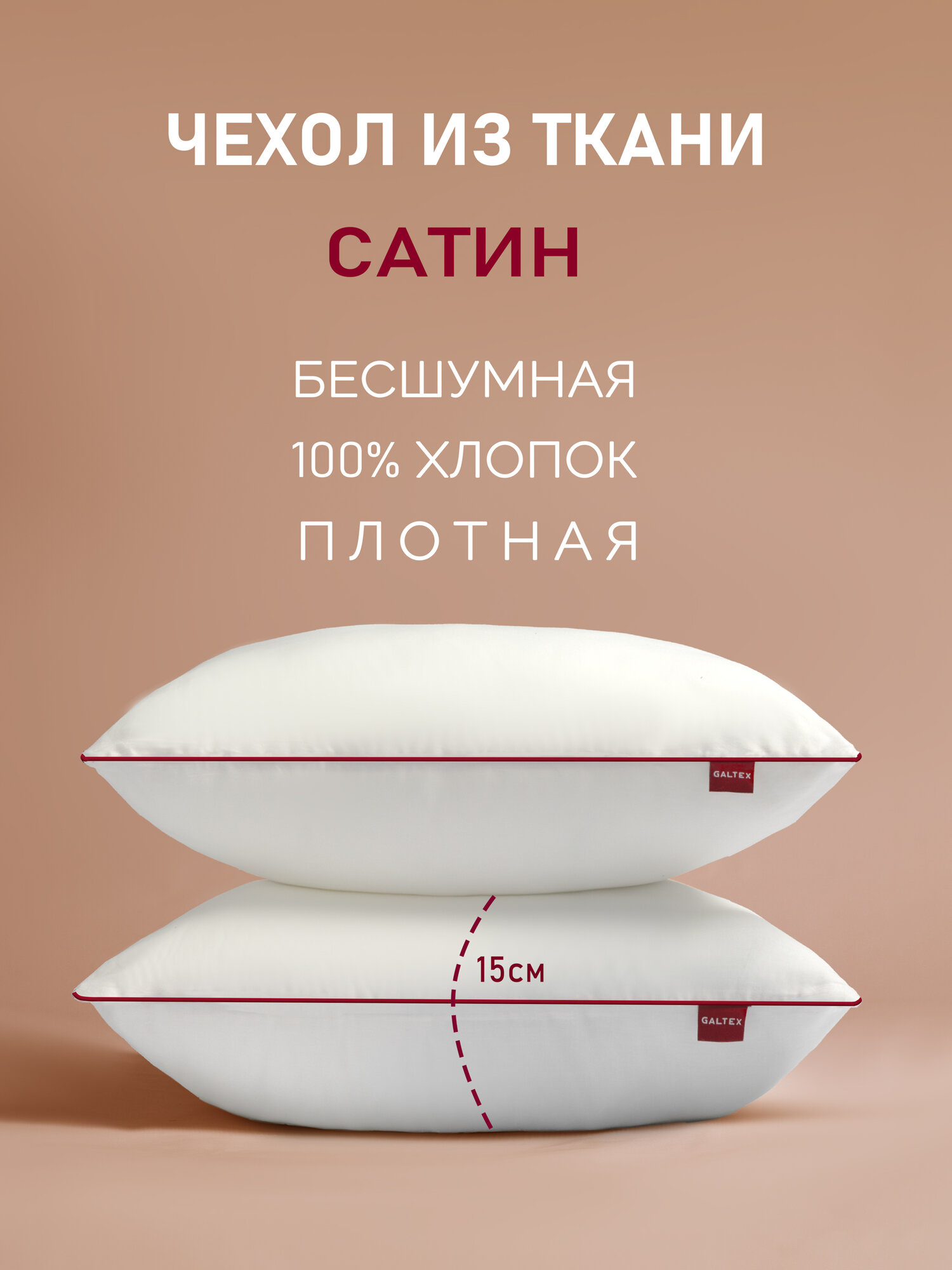 Подушка 50х70 - 2 шт Сатин, наполнитель- силиконизированное волокно, кант бордо интересное: