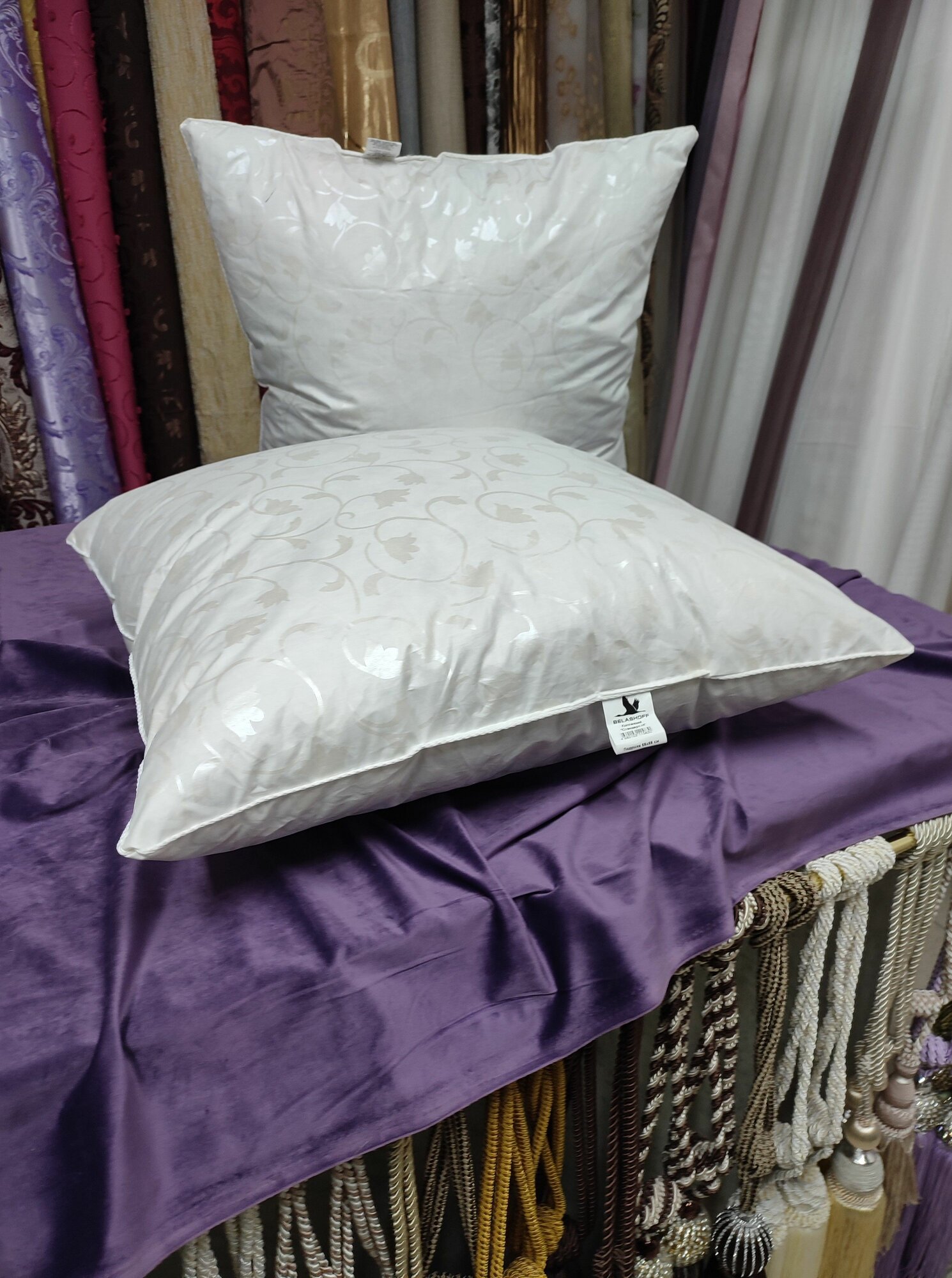 Подушка Belashoff "Гармония" 70x70 лебяжий пух 100% п. э. чехол cъемный, на молнии